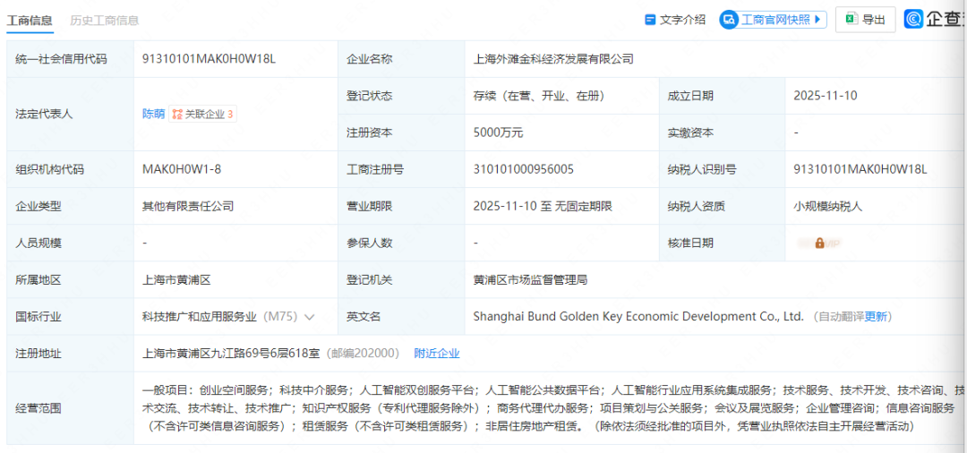 上海信托出资成立外滩金科,经营范围涵盖多项AI业务