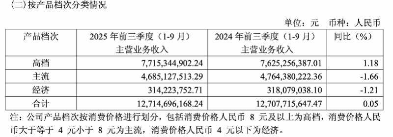 公司业绩表现 - 前三季度营收130.59亿元,同比微降0.03%,归母净利润12.41亿元,同比下降6.83% [1] - 第三季度营收42.2亿元,同比增长0.41%,但归母净利润3.76亿元,同比下降12.71% [1] - 连续两个季度归母净利润下跌超12%,第二季度归母净利润3.92亿元,同比下降约12.7%,营收同比下降1.81% [1] - 前三季度啤酒销量266.81万千升,同比增长0.42%,但增速低于行业整体水平 [1] 产品结构分析 - 高档产品(8元以上)前三季度收入77.15亿元,同比增长1.18% [2][3] - 主流产品(4至8元)收入同比下降1.66%,经济产品(4元以下)收入同比下降1.21% [2][3] - 高端产品增长未能覆盖主流和经济价格带的下滑,整体主营业务收入同比仅增长0.05% [2][3] 市场竞争与行业动态 - 公司为促进动销加大市场费用投入,第三季度销售费用7.04亿元,同比增长13.7%,前三季度累计销售费用20.37亿元,增长3.47% [4] - 外资啤酒高端产品增长乏力,百威亚太前三季度营业收入同比下降8.09%,净利润同比下降19.95%,在华市场业绩收缩是重要原因 [4] - 外资高端产品市场收缩与夜场消费渠道减少、餐饮渠道国产替代力度加大有关 [5] - “新大众”(8元)价格带崛起,对外资产品构成挑战 [5] 竞争对手比较 - 燕京啤酒前三季度营收134.33亿元,同比增长4.57%,归母净利润17.70亿元,同比增长37.45%,在营收和净利润上均超越重庆啤酒 [6] - 燕京U8定位8至10元次高档价格带,出厂吨价约5000元/吨,渠道利润空间和扁平化分销体系激发经销商积极性 [6] - 行业观点认为8元价格带产品正向上侵蚀10元以上市场,同时替代3元到5元价格带,可能影响重庆啤酒高档产品的市场占有率 [6] 公司战略调整 - 公司正利用第四季度淡季进行策略细化与调整,重点布局即时零售等非现饮渠道 [7] - 非现饮渠道成为吸引新消费者尤其是年轻群体的关键抓手,拉罐产品、一升装精酿等在该渠道快速渗透 [7] - 公司跨界饮料渠道,通过多品类布局补充啤酒以外的消费 [7]