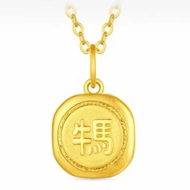 牛马方圆牌黄金吊坠
