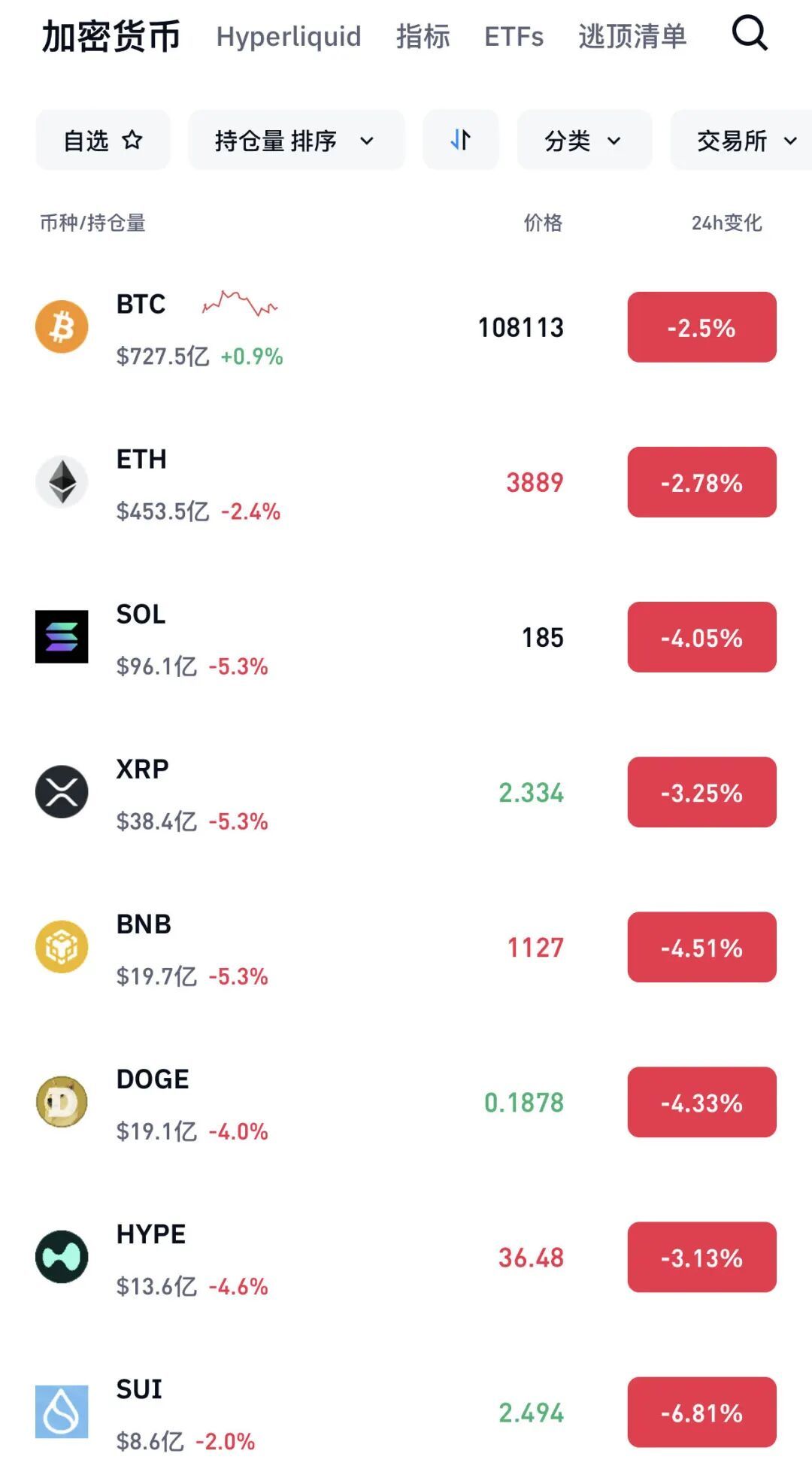 加密货币市场行情 - 10月17日加密货币市场全线跳水,比特币下跌2.5%至108,113美元,此前一度突破126,000美元 [1] - 以太坊下跌2.78%至3,889美元,瑞波币下跌3.25%至2.334美元,狗狗币下跌4.33%至0.1878美元,SUI币下跌6.81%至2.494美元 [2][3] - 近24小时全球共有超20万人爆仓,爆仓总金额为7.18亿美元,其中最大单笔爆仓单发生在Hyperliquid-ETH,价值2042.74万美元 [3] 主要加密货币持仓与价格变动 - 比特币持仓量727.5亿美元,24小时增长0.9%,价格108,113美元,24小时变化-2.5% [2] - 以太坊持仓量453.5亿美元,24小时减少2.4%,价格3,889美元,24小时变化-2.78% [2] - 瑞波币持仓量38.4亿美元,24小时减少5.3%,价格2.334美元,24小时变化-3.25% [2] 市场爆仓数据 - 24小时内多单爆仓5.3亿美元,空单爆仓1.9亿美元,总爆仓金额7.2亿美元 [4] - 12小时内多单爆仓1.2亿美元,空单爆仓4441万美元,总爆仓金额1.6亿美元 [4] - 4小时内多单爆仓1045.9万美元,空单爆仓850.8万美元,总爆仓金额1896.7万美元 [4] 宏观经济与市场背景 - 美国地区性银行接连陷入信贷欺诈事件,加剧投资者对信贷市场的担忧,推动避险情绪上升 [5] - 10月16日美股地区银行指数收跌6.2%,费城银行指数收跌3.6%,Zions Bancorp股价收跌13.14%,Western Alliance下跌10.8% [5] - 美国参议院第十次否决临时拨款法案,导致美国政府"停摆"持续,进一步打击市场风险偏好 [5] 美联储政策预期 - 市场预期美联储10月降息概率达100%,降息25个基点的概率为96.3%,降息50个基点概率为3.7% [5] - 美联储理事米兰表示应降息50个基点,但预计实际降息25个基点,近期长期收益率下降表明市场认为降息正确 [6] - 美联储理事沃勒表示可先降息25个基点观察市场反应,中性利率比目前联邦基金利率低约100至125个基点 [6]