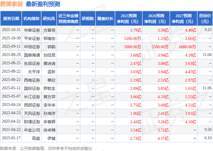 投资评级 - 投资评级为买入,并予以维持 [7] 核心财务表现 - 2025年前三季度实现营业收入45.0亿元,同比下降4%;归属净利润3.5亿元,同比增长13%;扣非净利润约3.2亿元,同比增长9% [2][4] - 2025年第三季度单季实现营业收入15.7亿元,同比下降1%;归属净利润1.3亿元,同比增长33%;扣非净利润约1.2亿元,同比增长27% [2][4] - 公司前三季度归属净利率约7.8%,同比提升1.2个百分点;单三季度归属净利率约8.3%,同比提升2.1个百分点 [10] - 公司前三季度经营活动产生的现金流净额为6.5亿元,显著优于去年同期 [10] 收入与业务分析 - 第三季度收入下滑幅度(-1%)较前几个季度(分别为-13%、-2%、-7%)明显收敛 [10] - 收入下滑收敛的原因包括:深耕渠道新增门店,今年上半年瓷砖零售渠道收入同比增长6%,高值产品收入同比增长20%,新建店面133家,重装升级168家 [10] - 公司开拓高值产品成效显著,持续推出降醛抗菌瓷砖、墙面岩板、石墨烯智暖岩板、免烧生态石、装配式卫浴等创新性、个性化和低碳绿色产品以及干法制粉等创新生产工艺 [10] 盈利能力与成本控制 - 公司前三季度毛利率约31.1%,同比基本持平;其中三季度毛利率约32.6%,同比基本持平,环比下降1.2个百分点 [10] - 公司积极降本增效,通过数字化和AI技术提升经营效率,制造成本进一步降低,部分抵消了均价下行的影响 [10] - 公司前三季度期间费率约19.1%,三季度期间费率约19.9%,同比下降1.4个百分点 [10] 经营质量与行业地位 - 公司2023-2025年前三季度收现比分别为1.24、1.23、1.21,经营质量维持优质 [10] - 应收账款绝对值已降至期末的9.1亿元,公司三季度信用减值损失已不到0.1亿元,是消费建材产业链中最早走出坏账影响的企业之一 [10] - 行业供给出清显著,2024年全国建筑陶瓷产量约59.1亿平方米,较2021年累计下降28%;生产线数量由2022年的2485条减少至2193条,退出率为11.75% [10] - 在行业下行期,该公司的收入表现好于竞争对手,其2024年瓷砖产品收入较2021年累计下降19%,表现优于马可波罗(-22%)、蒙娜丽莎(-34%)和帝欧家居(-60%) [10] 盈利预测与估值 - 预计公司2025-2026年归属净利润为4.7、5.8亿元 [10] - 对应2025-2026年预测市盈率分别为17倍、14倍 [10] - 根据财务报表预测,2025年预计每股收益(EPS)为0.41元,2026年预计为0.50元 [17]