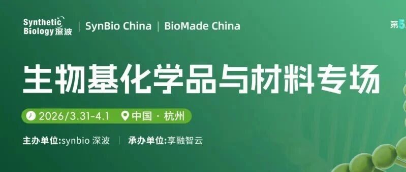 基于此, 2026年3月31日-4月1日 ,"第五届中国合成生物学及生物制造大会"将在杭州举办,其中设置 【 生物基化学品与材料专场】 ,旨在汇聚产学 研用多方智慧,助力生物基化学品与材料产业高质量发展。 大会时间 | 2026年3月31日-4月1日 大会地点 | 杭州-和达希尔顿逸林酒店 大会规模 | 1000人 主办单位 | synbio深波 承办单位 | 享融智云 大会介绍 在全球推进绿色转型与"双碳"目标的战略背景下,生物基化学品与材料作为生物制造产业的核心支柱,凭借原料可再生、全生命周期低碳环保等核心 优势,正加速替代传统石油基产品,在包装、纺织、汽车等领域展现出广阔应用前景,成为全球产业绿色转型的关键赛道。 媒体支持 | synbio新农食、synbio新美护、synbio新材料、生物制造圈、合成生物学俱乐部 0 1 立即扫码 免费 报名 论坛设置 0 2 14:00-14:30 | | 会场一 | 会场二 | 会场三 | | --- | --- | --- | --- | | Day1 AM | | 新增长 · 新突破:生物制造产业生态大会 | | | | Life China第三届功能 食品与 ...
