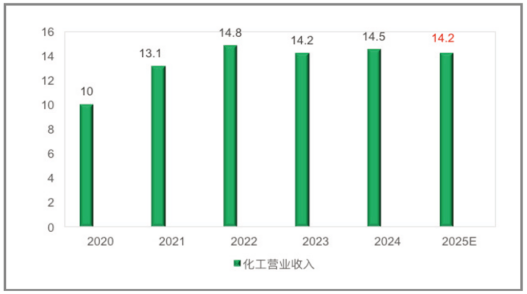 近日,《中共中央关于制定国民经济和社会发展第十五个五年规划的建议》正式发布。回顾"十四 五"成就,展望"十五五"征程,化学工业需要紧扣国家战略,在产业升级、创新驱动、绿色低碳、智能 制造、国际合作和园区建设六个方面系统推进,实现高质量发展。 "十四五"期间,中国化学工业实现了总量稳步增长,产业实力再上新台阶。2024年行业营业收入达 到14.5万亿元,较2020年增长45%,显示出强劲的发展势头。国内主要化学品产量年均增速保持在4.6% 左右,乙烯、甲醇、烧碱、纯碱、电石、化肥、硫酸、合成树脂、农药和轮胎等大宗化工产品产量稳居 全球首位。目前生产了全世界约42%的主要化工产品,已经构建成为世界上规模最大、门类最全、原材 料最为丰富、市场最大的生产体系。 数据来源:中国化工经济技术发展中心 在全球化工业竞争中,中国企业表现突出。2024年全球化工行业收入前50企业名单中,中国企业入 围11家,实现营业收入2.1万亿元,占前50企业总收入的27.9%,是美国企业的1.35倍,超过德国和日本 企业营业收入总和。行业在全面提升产能的同时,创新能力不断增强,能效水平和环境水平显著改善, 数字化建设有序推进,世界第一化工 ...