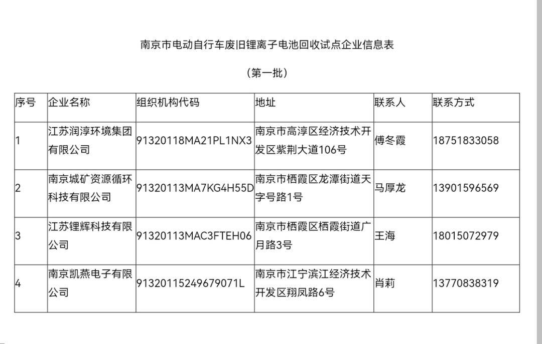 南京公布 4 家锂电池回收试点企业 破解“小电驴”电池回收难题