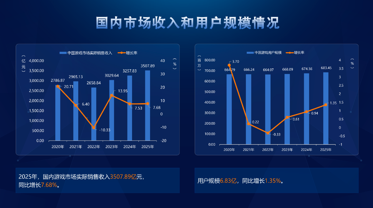 2025年国内游戏市场收入3507.89亿元 市场规模和用户规模均创新高