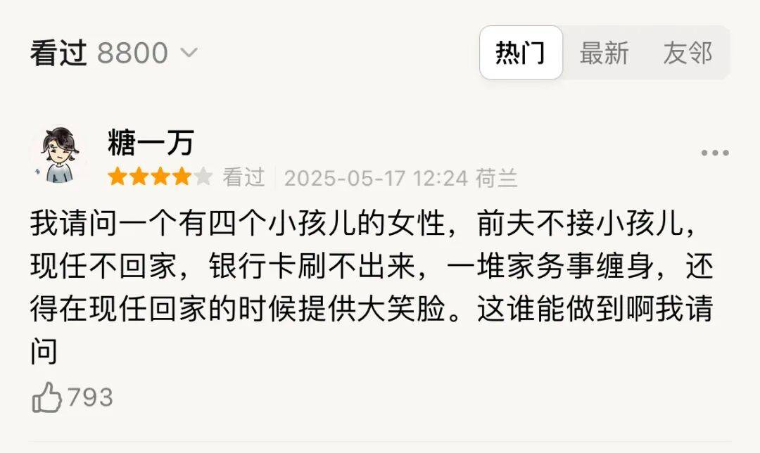 "牺牲者也要反思吗?" 近期上映的电影《爱的暂停键》给观众带来某种情感层面的不适。电影中二婚四娃、无力专注工作的女主角 Maria,在婚姻与育儿的琐碎中独自挣扎,去 趟超市都状况百出,还因银行余额不够窘迫到打电话借钱付款。 她感觉自己付出了所有,却换来了丈夫的疏远,指责她有"情绪管理问题";两个大孩子对母亲疏于照料而不满,不愿忍受她的坏脾气,宁愿搬走和她的前 夫生活。 当丈夫最终提出离婚时,她的世界崩塌了——"明明该感到委屈的人是我啊,我什么都牺牲了!" 直到走进了心理咨询室,她才发现原来"自己对自己的生活也负有责任"。她早已深陷于一种"受害者叙事"而不自知,她常常使用情绪暴力绑架亲人,会通 过让丈夫产生"内疚"来控制他不要离开自己。 在女主身上,很容易看到我们周边不少人的影子。 电影看似是一场婚姻矛盾,实则是女主从"怨妇"到觉醒者的内在成长。 故事的动人之处也正在于此。这呼应着电影的英文名"Loveable",比爱更难的是,普遍存在着的"被爱的不耐受"——正如热评所言"从未被真正爱过的 人,一生都在试图证明爱的不可靠。" 在媒体采访中,导演莉莉娅说,"最重要的一个转折点是她倾向于去扮演亲密关系中的受害者角色 ...