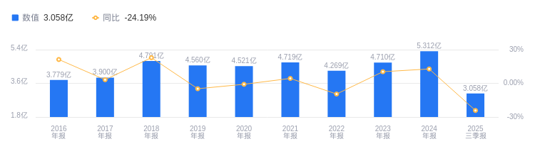 公司财务表现 - 2025年第三季度营业收入为3.27亿元,同比下降21.53% [1] - 2025年第三季度归属于上市公司股东的净利润为1800.29万元,同比下降29.44% [1] - 2025年前三季度累计营业收入为9.51亿元,同比下降14.82% [1] - 2025年前三季度累计归属于上市公司股东的净利润为5206.16万元,同比下降38.97% [1] 公司盈利能力指标 - 2025年第三季度基本每股收益为0.0534元 [1] - 2025年前三季度基本每股收益为0.1546元 [1]