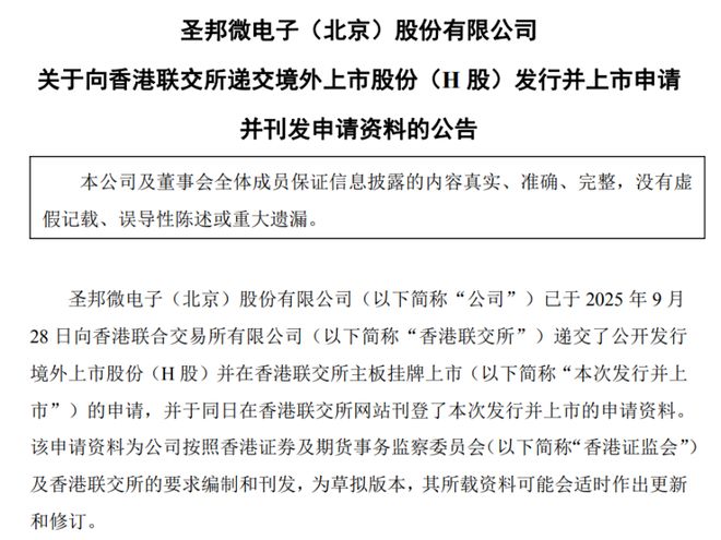 公司上市申请 - 圣邦微电子已于2025年9月28日向香港联交所递交H股上市申请,并于同日刊发申请资料 [1] 公司基本情况 - 公司成立于2007年,于2017年上市,总部位于北京,并在多个国内城市设有技术中心 [3] - 公司专注于高性能、高品质模拟集成电路的研发与销售,产品覆盖信号链及电源管理两大领域 [3] - 公司拥有34大类5900余款可供销售产品,广泛应用于工业控制、汽车电子、通讯设备及消费类电子等领域 [3] 产品与技术 - 信号链类模拟芯片产品包括放大器、数据转换器、电压基准、接口、模拟信号开关、温度传感器及射频产品等 [4] - 电源管理类模拟芯片产品包括开关型直流电源转换器、低压差线性稳压器、电池充电管理、MOSFET及马达驱动器等 [4][5] - 具体信号链产品涵盖运算放大器、各类模数/数模转换器、模拟前端、音频功率放大器及电平转换芯片等 [4] - 具体电源管理产品涵盖LDO、DC/DC转换器、LED驱动器、PMU、电池管理芯片及MOSFET驱动芯片等 [5] 财务表现 - 2025年第三季度营业收入达10.29亿元,同比增长35.00% [7] - 2025年第二季度营业收入为9.818亿元,同比增长33.42% [7] - 2025年第一季度营业收入为9.021亿元,同比增长30.00% [7] - 2025年第三季度归母净利润为2.153亿元,同比增长109.10% [8] - 2025年第二季度归母净利润为1.424亿元,同比增长102.74% [8] - 2025年第一季度归母净利润为1.411亿元,同比增长55.23% [8]
