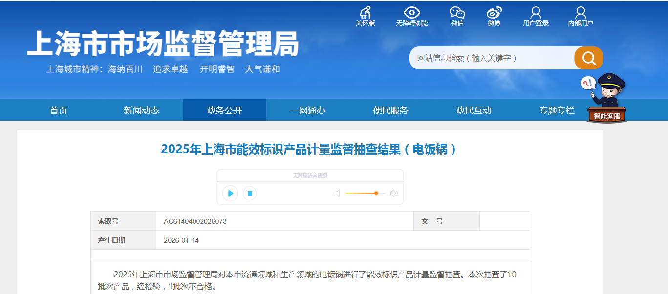 2025年上海市能效标识产品计量监督抽查结果(电饭锅)公布