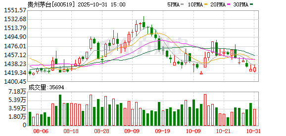 19只白酒股上涨 贵州茅台1430.01元/股收盘