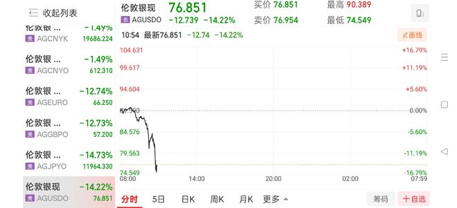现货白银盘中暴跌16%,每盎司下跌近13.5美元
