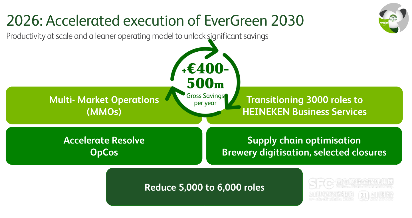 国际啤酒巨头2025年业绩概览 - 国际啤酒巨头喜力集团与百威亚太先后披露2025年全年业绩,整体呈现增速放缓、销量下行的趋势 [1] - 喜力集团2025年实现净收入287.53亿欧元,净利润18.85亿欧元,连续两年同比下跌,销量也再次转为下滑 [1] - 百威亚太2025年实现收入57.64亿美元,同比内生下滑6.1%,正常化除息税折旧摊销前盈利(EBITDA)15.88亿美元,同比内生下滑9.8% [1] - 百威亚太股权持有人应占溢利为4.89亿美元,同比大幅下滑32%以上,创下其上市以来的新低 [1] - 面对业绩压力,行业龙头正在采取换帅、裁员、降本、控预期等一系列举措 [1] 喜力集团业绩详情与战略调整 - 按国际财务报告准则(IFRS)口径,喜力集团2025年收入同比下滑4.7%,净收入同比下滑3.6%,运营利润同比下滑3.2%,销量同比下滑1.2% [3][4] - 按喜力更愿意采用的BEIA口径(剔除特殊项目及收购相关无形资产摊销),2025年净收入为288.9亿欧元,有机增长1.6%;营业利润为43.85亿欧元,有机增长4.4% [4] - 2025年喜力在超过60%的市场维持或提升了市场份额,并在27个市场实现了双位数增长 [5] - 在中国市场,喜力啤酒、喜力星银均实现了两位数增长,红爵啤酒销量翻倍,中国已跻身其利润贡献前三大市场 [5] - 喜力集团已将2026年营业利润增长预期下调至2%至6%,低于此前预测的4%至8%的增幅 [6] - 公司计划到2030年前,每年节省4至5亿欧元的成本,具体举措包括裁员5000至6000人(约占全球8.9万员工的5.6%—6.7%)、整合3000个岗位至业务服务部门、优化供应链及关停部分产能 [1][6] 百威亚太业绩详情与市场表现 - 百威集团整体2025年前三季度收入同比有机增长1.8%,但正常化后EBITDA同比有机下滑5.8%,销量同比有机下滑2.6% [8] - 百威亚太2025年全年总销量同比内生下滑6% [8] - 分市场看,百威在印度市场增长好于行业水平,四季度实现两位数增长,全年市场份额扩大;在韩国市场全年市场份额也有所扩大,EBITDA提升 [8] - 然而在关键的中国市场,2025年业绩未能好转:收入同比内生下滑11.3%,正常化EBITDA同比内生下滑15.7%,销量同比内生下滑8.6% [8][9] - 百威亚太管理层承认“在中国的业绩未尽潜能”,并将尽快在中国恢复增长作为首要任务 [9] 百威亚太在中国市场的复苏策略 - 过去一年,百威明确将在中国尽快恢复增长作为首要任务,重点投入百威啤酒、哈尔滨啤酒,并明显加强了非即饮渠道以及O2O渠道的投入 [10] - 2025年,百威中国的非即饮及O2O渠道对销量及收入的贡献均有所提升 [10] - 对于2026年,百威重申在中国的首要任务是重燃增长趋势,并重建市场份额的增长动能 [11] - 公司计划通过百威品牌引领,辅以核心+和超高端产品组合的创新,加强产品组合以把握增长机遇 [11] - 公司将加快拓展非即饮营销途径,并利用持续的数字化来提升执行力及消费者参与度 [11] - 自去年12月以来,百威已推出一系列以“马上百威 马年有奔头”为主题的营销活动,包括推出马年限定产品、与B站合作跨年晚会、在全国12座城市举行倒数庆祝活动等,以提升在家庭、社交和送礼场合的影响力 [11]