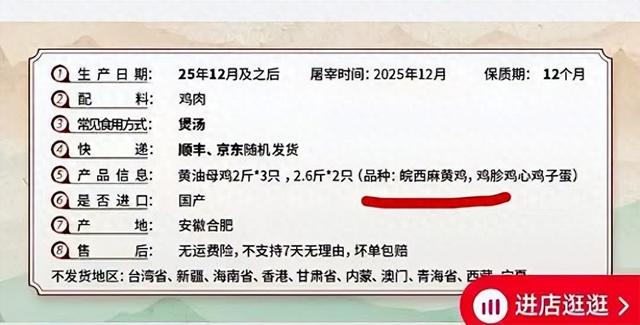 事件概述 - “与辉同行”直播间在2025年12月安徽专场带货的“大别山黄油母鸡”产品,因直播介绍与商品详情页曾标注“皖西麻黄鸡”,遭到六安市麻黄鸡产业协会公开质疑其真实性 [1] 产品与销售情况 - 涉事产品为“黄油母鸡”,规格包括2斤*3只和2.6斤*2只,直播时售价低至约28元/只(即84元/3只)[1][2] - 截至报道时,该产品在百食轩店铺的销量已超过20万单 [8] - 网络流传的短视频切片显示,“与辉同行”主播曾介绍该产品为“来自皖西的麻黄鸡” [8] 协会的核心质疑 - **货源真实性**:协会对皖西地区主要麻黄鸡养殖供应主体进行全面摸排后,确认没有养殖供应主体向该产品的相关经营方供应过货源,双方无采购往来记录 [7] - **成本与价格严重不符**:协会指出,在皖西地区,养殖周期达500天以上的麻黄鸡老母鸡,单只养殖成本远超150元,84元的价格甚至买不到半只皖西麻黄鸡 [7] - **供应量不匹配**:根据行业统计,皖西地区每年出栏的500天以上麻黄鸡数量不足2万只,这一规模无法支撑直播带货的巨大销量 [7] 涉事各方的回应与行动 - **六安市麻黄鸡产业协会**:协会会长李书军于2025年12月下旬在个人社交账号发布质疑视频,并于2026年1月9日以协会名义发布《郑重声明》 [7][8] - **商家(百食轩)**:在李书军发布质疑视频后,商家删除了商品详情页中“皖西麻黄鸡”的相关表述 [2][7]。百食轩店铺客服否认曾修改过详情页中有关麻黄鸡的介绍,但在记者展示截图后未予回答 [8]。记者尝试联系其关联公司,电话未接通或已停机 [9] - **“与辉同行”直播间**:客服回应称,产品“兽药残留、抗生素、抗菌药、违禁药等均有检测”,并提供了合格检测报告 [8]。对于“麻黄鸡”表述争议,客服解释为“系行业通称命名,一般是指具有麻黄羽色特征的鸡类” [8] - **生产厂商(安徽华鼎)**:商品详情页显示的动物检疫证明中,生产单位为安徽华鼎食品有限公司 [5]。记者实地探访其注册地址(合肥市肥西县山南镇李桥村塘稍),多位村民表示附近没有养殖场或屠宰场 [10]。记者致电天眼查显示的公司电话,对方称不认识“与辉同行”并挂断,该号码关联企业超99家,提示疑似代理记账电话 [10] 行业背景与消费者反应 - **行业命名倡议**:2024年,中国畜牧业协会等联合发起倡议,将饲养一年以上后出栏上市的种母鸡和产蛋鸡,由“淘汰鸡”更名为“老母鸡” [11] - **可能的低价鸡源**:村民表示,淘汰蛋鸡(活禽)价格在4.3元/斤上下浮动,一只2斤多的淘汰蛋鸡收购价仅十余元 [10]。协会会长李书军认为,符合涉事产品售价的,或许只有淘汰的蛋鸡 [10] - **消费者观点分化**:部分消费者认为产品性价比高,不在意具体品种;另一部分消费者则认为涉及商业诚信问题 [11] - **政府相关部门回应**:安徽省商务厅相关部门称,此事应是协会和企业对于标准的认定有分歧,目前六安市政府正在处理中,“应该不涉及虚假宣传” [12]
