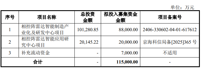 公司上市与募资计划 - 浙江华盛雷达股份有限公司于1月19日申请上交所科创板上市审核状态变更为“已问询” [1] - 公司拟募资总额为11.5亿元人民币 [1] - 本次发行募集资金扣除发行费用后将全部用于主营业务相关项目 [2] 公司业务与市场地位 - 公司深耕气象精细化探测及短临预警预报业务,提供相控阵气象雷达系统及精细化预警预报软件系统 [1] - 主要产品为相控阵天气雷达、相控阵测雨雷达及相关算法和应用系统 [1] - 产品应用于天气探测预报、水利雨水情监测、民航气象保障、重大活动保障等领域,并正拓展至低空飞行保障及韧性城市建设 [1] - 公司是国内最早从事相控阵气象雷达研制、推广的主要厂家之一,系行业头部企业 [2] - 产品已在全国20余个省份落地,并参与多项国家级重大活动气象保障 [2] - 公司积极布局激光测风雷达、泛在感知设备等产品,致力于成为气象全感知领域的行业龙头企业 [1] 募集资金具体用途 - 募集资金将用于三个项目,总投资额合计约11.5亿元 [3] - 相控阵雷达智能制造产业化及研发中心项目,总投资101,280.85万元,拟投入募集资金88,000.00万元 [3] - 相控阵雷达智能应用研究中心项目,总投资20,145.22万元,拟投入募集资金20,000.00万元 [3] - 补充流动资金项目,拟投入募集资金7,000.00万元 [3] 公司财务表现 - 营业收入实现快速增长:2022年约3042.7万元,2023年约7322.11万元,2024年大幅增长至约3.54亿元,2025年1-6月为1.34亿元 [3] - 净利润在2022年及2023年为亏损状态,分别约为-5508.04万元和-5334.94万元,于2024年扭亏为盈,达到约7761.58万元,2025年1-6月为1149.44万元 [3] - 资产总额持续增长:从2022年末的21,957.92万元增长至2025年6月末的75,702.91万元 [4] - 资产负债率(合并)呈下降趋势:从2022年末的66.27%降至2025年6月末的39.32% [4] - 研发投入占营业收入的比例较高但逐年下降:2022年为77.25%,2023年为35.18%,2024年为7.36%,2025年1-6月为13.69% [4] - 加权平均净资产收益率显著改善:从2022年的-70.81%提升至2024年的30.30% [4]