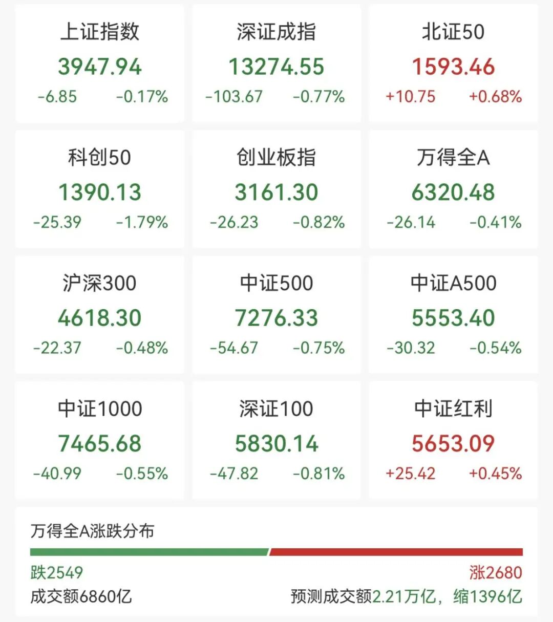 【导读】短剧游戏概念股快速拉升!三七互娱开盘不到一分钟,直线拉涨停! 一起来看下最新的市场情况及资讯。 11月3日开盘,A股市场震荡调整,创业板指一度跌逾1%。 | 上证指数 | 深证成指 | | 北证50 | | | --- | --- | --- | --- | --- | | 3947.94 | | 13274.55 | 1593.46 | | | -6.85 -0.17% -103.67 -0.77% +10.75 +0.68% | | | | | | 科创50 | | 创业板指 | 万得全A | | | 1390.13 | | 3161.30 | 6320.48 | | | -25.39 -1.79% -26.23 -0.82% -26.14 -26.14 -0.41% | | | | | | 沪深300 | 中证500 | | 中证A500 | | | 4618.30 | | 7276.33 | 5553.40 | | | -22.37 -0.48% -54.67 -0.75% -30.32 -30.32 -0.54% | | | | | | 中证1000 | 深证100 | | 中证红利 | | ...