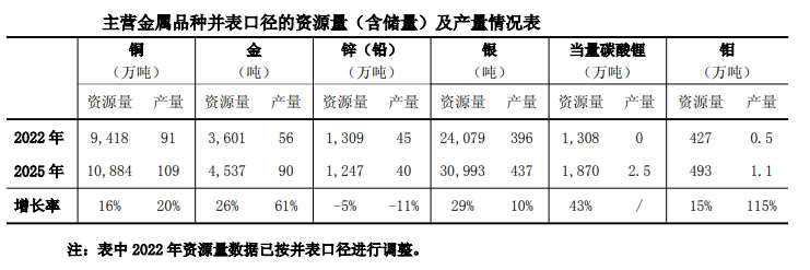 公司战略规划 - 公司审议通过《公司三年(2026—2028年)主要矿产品产量规划和2035年远景目标纲要》,明确未来3年产量规划并提出至2035年全面建成“绿色高技术超一流国际矿业集团”的远景目标 [1] - 规划到2028年,公司资源储量、主要矿产品产量、销售收入、资产规模、利润等综合指标排名进一步提升,铜、金矿产品产量进入全球前3位,全面建成全球化运营管理体系和ESG可持续发展体系 [1] - 力争到2035年,公司主要指标较2025年实现跨越式增长,部份指标达到全球首位 [1] 主要矿产品产量规划 - 矿产金产量规划从2025年的90吨增长至2026年的102吨,同比增长13.3% [2] - 矿产铜产量规划从2025年的109万吨增长至2026年的120万吨,同比增长10.1% [2] - 矿产银产量规划从2025年的437吨增长至2026年的520吨,同比增长19.0% [2] - 矿产锌/铅产量规划在2025年和2026年均维持在40万吨 [2] - 当量碳酸锂产量规划从2025年的2.5万吨大幅增长至2026年的12万吨,同比增长380% [2] - 矿产铝产量规划从2025年的1.1万吨增长至2026年的1.5万吨,同比增长36.4% [2]