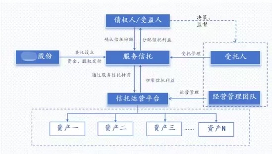 21世纪资管研究院 . 21世纪资管研究院是南方财经全媒体集团旗下致力于资管领域政策和业务研究的独立智库,研究院宗 旨:探索全球资管发展新趋势,求解国内资管发展新问题,搭建资管人才成长大平台,促进资管行业健 康长远发展。 记者丨唐曜华 以下文章来源于21世纪资管研究院 ,作者21世纪资管研究院 编辑丨方海平 债权人为信托的受益人,该信托的资产处置变现的收益以及资产运营的收益等都将用于偿还债 权人。委托人通常为公司或老板,信托公司为受托人。有的破产服务信托还会设立信托资产平 台公司或信托运营平台公司,由平台公司负责信托底层资产(或企业)运营、资产处置变现 等。 比如苏宁系拟成立的破产重整信托,装入信托的资产被划分为保留运营和处置变现两大类,并 最终被装入新苏宁集团有限公司和南京众城资产管理有限公司,两个公司分别作为新机制下的 运营管理公司、资产处置公司。 大多数情况下公司仍由原来的经营管理团队负责日常经营,比如按苏宁系的重组草案,张近东 虽然将交出旗下38家苏宁系公司的全部股权转进信托,等于他的股东权益几乎"清零",但他还 是有较大的话语权,公司也还是由原管理团队负责日常运营,只不过要受到严格监督。 如果存在原 ...