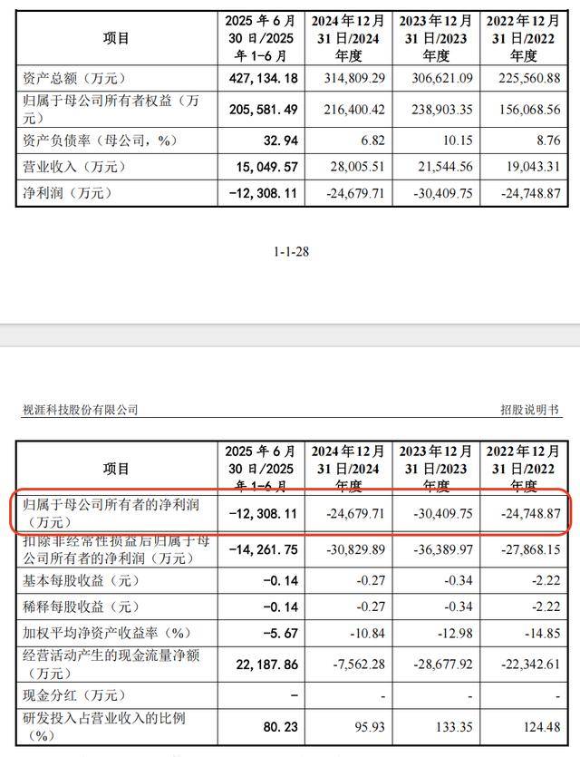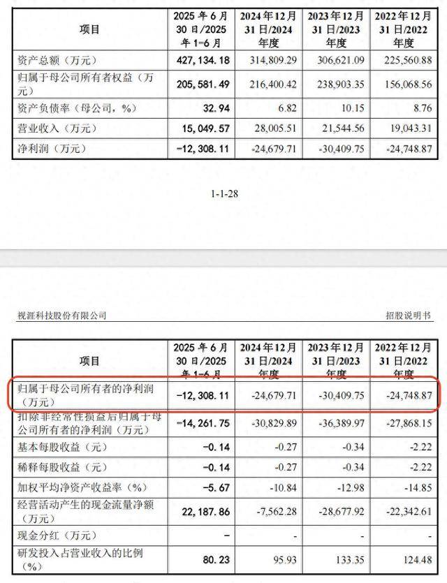 明年扭亏为盈难保证 深圳商报·读创客户端记者 宁可坚 近日,视涯科技股份有限公司(简称"视涯科技")更新招股书。早前,6月26日,视涯科技科创板IPO 申请获受理,保荐机构为国泰海通。7月21日,上交所官网显示,视涯科技进入问询阶段。 根据招股书,视涯科技是全球领先的微显示整体解决方案提供商,核心产品为硅基OLED微型显示屏, 并为客户提供包括战略产品开发、光学系统和XR整体解决方案等增值服务。 视涯科技称,"公司是全球首家基于12英寸晶圆背板实现硅基OLED微显示屏规模量产的企业,也是全 球少数具备硅基OLED"显示芯片+微显示屏+光学系统"全栈自研能力的科创企业。" 业绩方面,视涯科技已连续亏损三年半。 报告期(2022年~2025年上半年)各期,视涯科技分别实现营收约1.9亿元、2.15亿元、2.8亿元、1.5亿 元,归母净利润-2.47亿元、-3.04亿元、-2.47亿元、-1.23亿元,3年半累计亏损约9.21亿元。 报告期各期,公司主营业务毛利率分别为19.12%、17.03%、21.52%和20.37%。 视涯科技在招股书中表示,公司基于对未来主要产品销量、售价、材料成本、期间费用水平等因素的合 ...