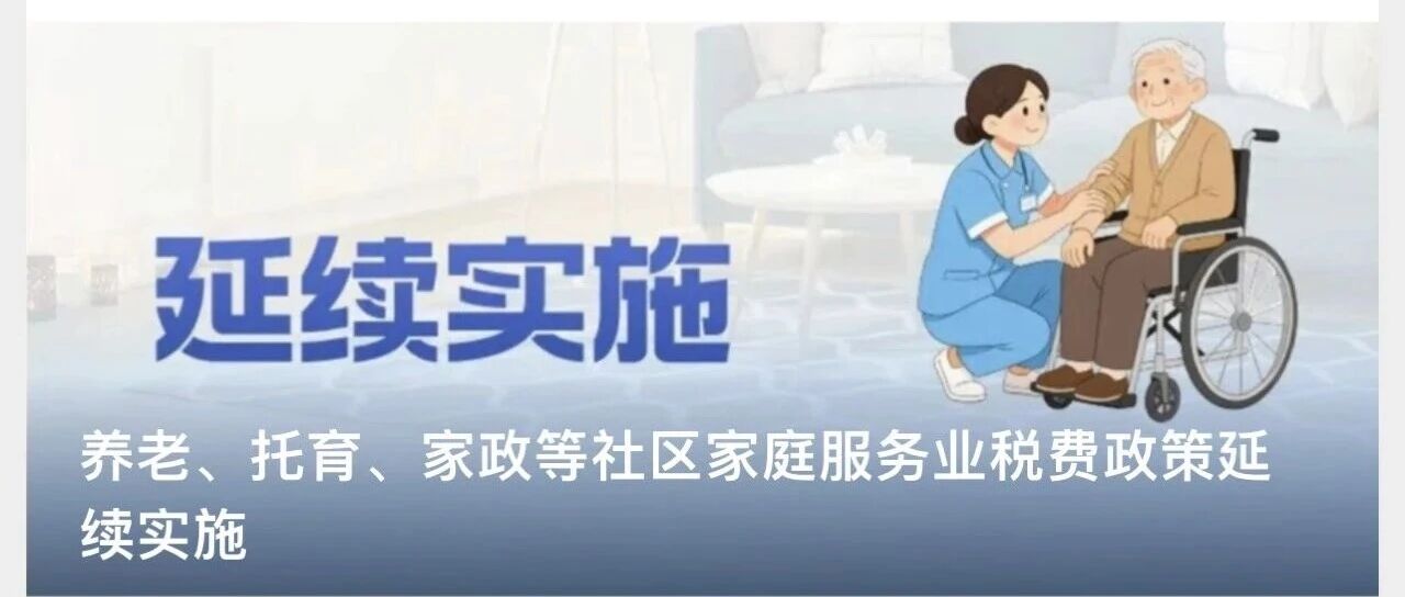 养老、托育、家政等社区家庭服务业免税政策再续两年!