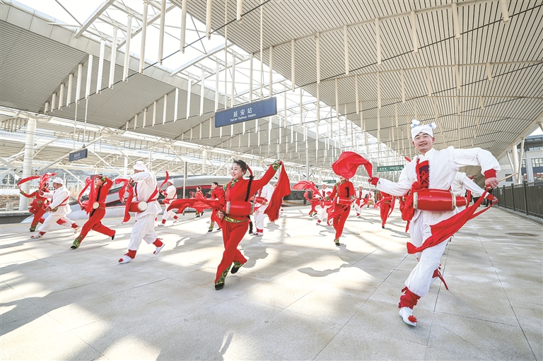 从新年贺词中汲取奋进力量 为梦想奋斗 为幸福打拼 中央纪委国家监委网站 管筱璞 李灵娜 2025年12月26日,西安至延安高速铁路正式开通运营,革命圣地延安迈入"高铁时代"。西延高铁全长299公 里,设计时速350公里,是目前穿越黄土高原设计时速最高的铁路。图为开通当日,群众在延安站打起腰鼓。 新华社发(刘翔 摄) "岁序更替,华章日新。在新年到来之际,我在北京向大家致以美好的祝福!"习近平总书记通过中央广播电 视总台和互联网,发表了2026年新年贺词。 时光不语,却回答了所有问题;岁月无声,却见证了所有奋斗。回望2025年,那些激荡人心的时刻、那些刻 骨铭心的瞬间、那些平凡而伟大的奋斗,都已镌刻在历史的长卷中,化作激励我们继续前行的力量。 "5年来,我们踔厉奋发、勇毅前行,克服重重困难挑战,圆满完成目标任务,在中国式现代化新征程上迈出 了稳健步伐" 历史的长河奔流不息,总会在特定年份留下特殊印记。 "2025年是'十四五'收官之年。5年来,我们踔厉奋发、勇毅前行,克服重重困难挑战,圆满完成目标任务, 在中国式现代化新征程上迈出了稳健步伐。"习近平总书记在新年贺词开篇,便点出了2025年的关键意义所 在。 时 ...