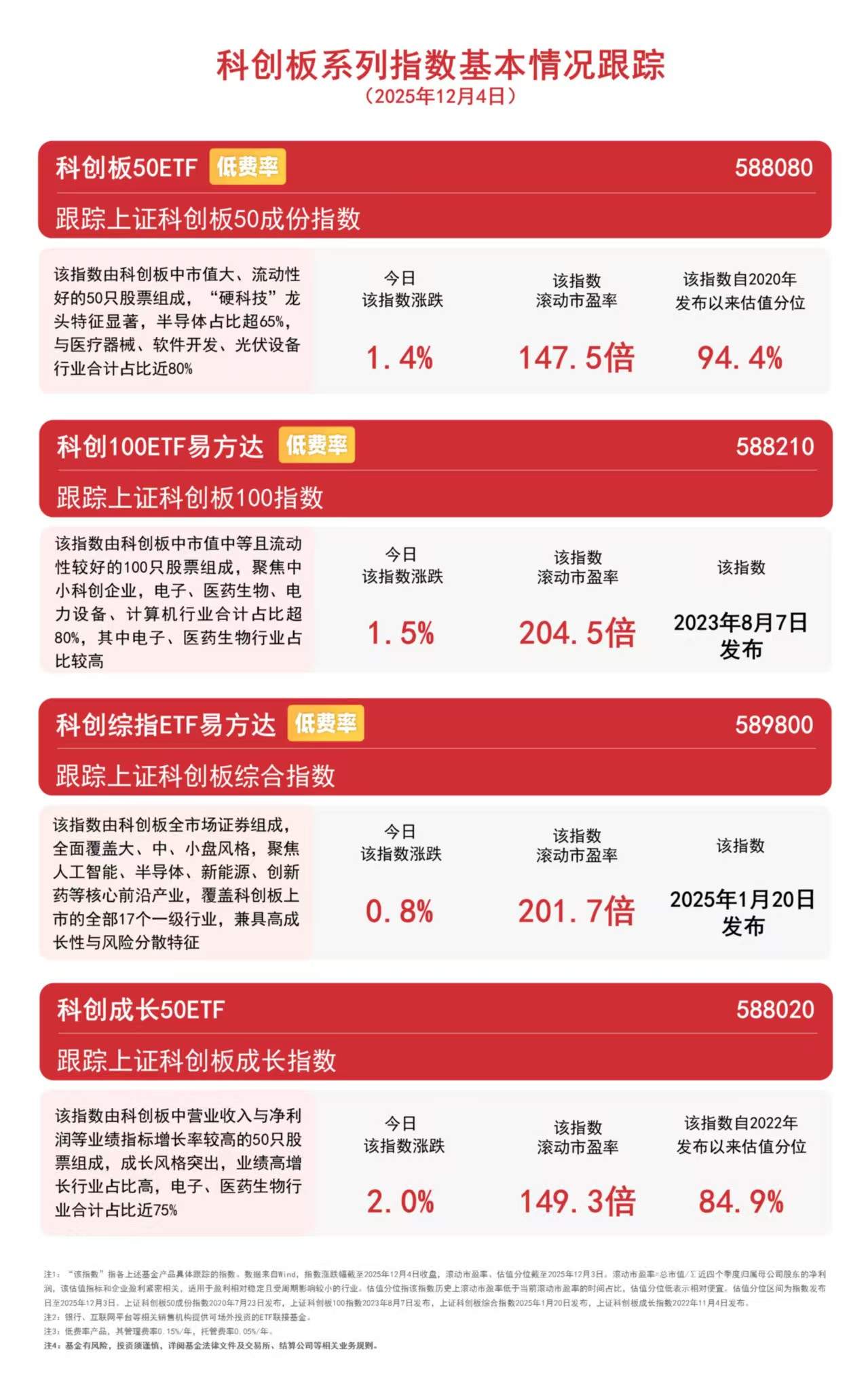 科创板系列指数集体上涨,关注科创板50ETF(588080)、科创综指ETF易方达(589800)等产品投资价值
