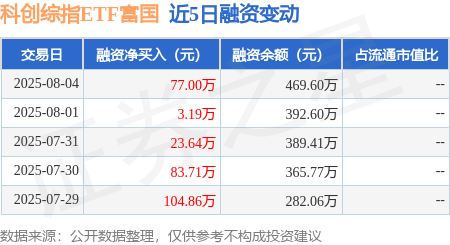 科创综指ETF富国:8月4日融资净买入77万元,连续3日累计净买入103.83万元