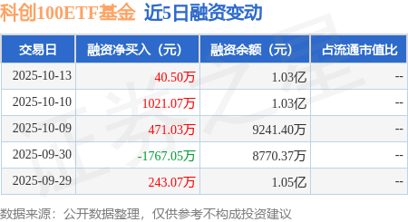科创100ETF基金:10月13日融资净买入40.5万元,连续3日累计净买入1532.6万元