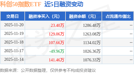 科创50指数ETF:11月20日融资净买入23.4万元,连续3日累计净买入260.11万元