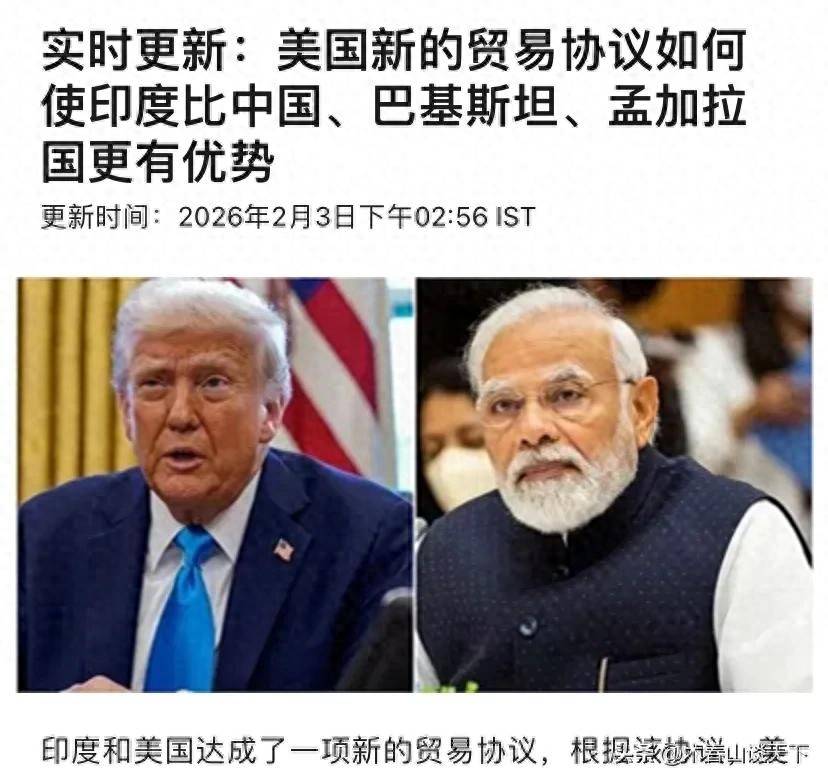 美印贸易关系与关税变动 - 2026年2月2日,美国撤销对印度的惩罚性关税,并将对等税降至18%,使当前有效关税降至14.1% [5] - 此次关税调整使印度出口企业获得显著优势,其14.1%的有效关税远低于中国同类产品面临的37%高关税 [5] - 此前,美国曾对印度施加惩罚性关税,导致印度对美出口商品面临总计50%的税率,严重打击了出口 [3] 市场与行业反应 - 关税利好消息刺激印度市场,iShares ETF一度暴涨超过4%,卢比兑美元汇率升至90.3,股指期货随之暴涨 [5] - 高关税时期曾导致印度对美出口额大幅下滑,从88亿美元跌至55亿美元,降幅接近40% [3] - 出口受影响的行业范围广泛,包括软件设备、药品和汽车零件等 [3] 美印双边协议内容与影响 - 作为协议的一部分,印度同意从美国购买价值高达5000亿美元的能源、科技产品和农产品 [7] - 该采购目标数额巨大,相当于将印度每年从美国415亿美元的进口额提升至一个翻倍的水平 [7] - 协议旨在减少对中国供应链的依赖,具有战略意义,并可能为美国能源商和农场主带来新订单 [7] 印度在俄罗斯石油问题上的立场 - 尽管美国公开声称印度将停止购买俄罗斯石油,但实际进口数据变化有限 [13] - 在声明发布前的2026年1月,印度从俄罗斯的原油进口量仍为每天120万桶 [13] - 印度官方计划在2026年2月将进口量减少至每天100万桶,降幅不到20%,并仅表态将“多样化能源来源” [13] - 印度可能通过第三方国家、转船换旗等方式继续进口俄罗斯石油,美国对此持默许态度 [15] 协议的政治本质与可行性 - 分析人士认为,印度承诺的5000亿美元对美采购目标在缺乏新增资源或基础设施的情况下几乎不可能实现 [11] - 该交易被视为一场政治配合,旨在为双方领导人创造外交成绩单和国内政治收益,而非严格的商业合同 [11][17] - 印度方面在协议中获得了关键的关税减免,同时巧妙地保留了继续进口俄罗斯石油等核心利益 [9][17]