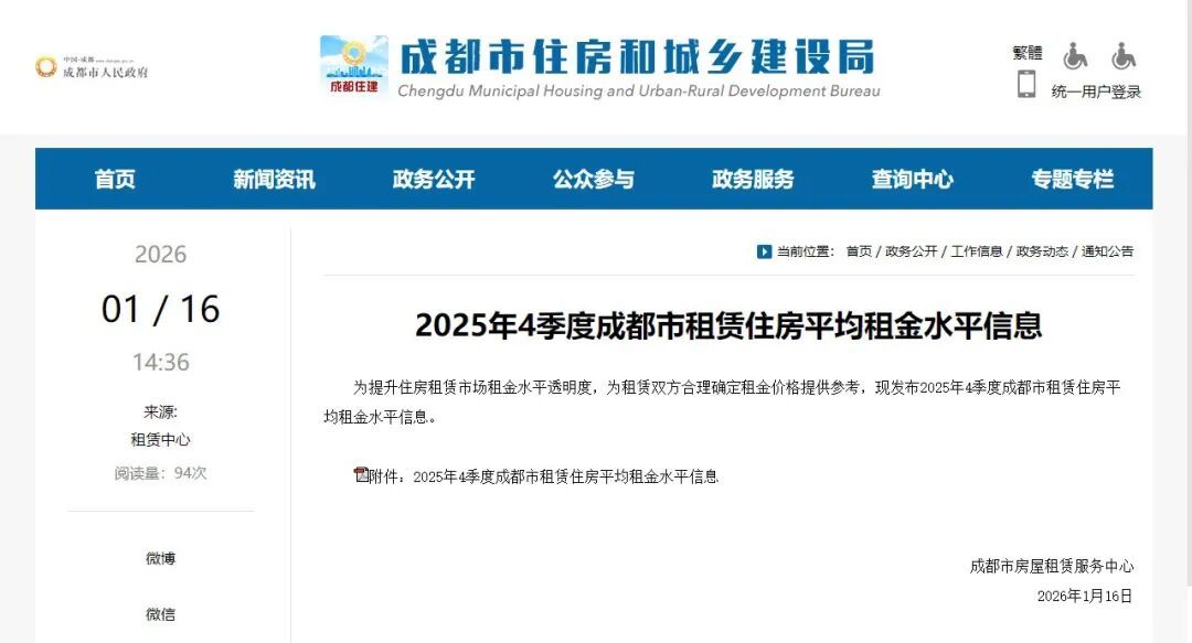 成都市2025年第四季度租赁住房平均租金水平 - 成都市住建局发布了2025年第四季度全市租赁住房平均租金水平信息,为市场提供了官方参考数据 [1] 核心城区住宅类租金水平 - **成都高新区**:住宅类租金最高水平出现在石羊街道,为46.94元/平方米/月;桂溪街道为44.49元/平方米/月;芳草街街道为36.14元/平方米/月;肖家河街道为36.12元/平方米/月 [5] - **锦江区**:住宅类租金最高水平出现在锦官驿街道,为45.97元/平方米/月;沙河街道为42.95元/平方米/月;东湖街道为40.84元/平方米/月;春熙路街道为44.03元/平方米/月 [5] - **青羊区**:住宅类租金最高水平出现在草市街街道,为36.76元/平方米/月;西御河街道为39.60元/平方米/月;少城街道为39.53元/平方米/月;府南街道为30.74元/平方米/月 [5] - **金牛区**:住宅类租金最高水平出现在荷花池街道,为37.49元/平方米/月;抚琴街道为34.45元/平方米/月;西安路街道为34.48元/平方米/月;营门口街道为32.85元/平方米/月 [6] - **武侯区**:住宅类租金最高水平出现在火车南站街道,为41.79元/平方米/月;望江路街道为39.37元/平方米/月;玉林街道为37.45元/平方米/月;红牌楼街道为38.22元/平方米/月 [6] - **成华区**:住宅类租金最高水平出现在猛追湾街道,为37.57元/平方米/月;跳蹬河街道为38.66元/平方米/月;万年场街道为40.82元/平方米/月;保和街道为36.37元/平方米/月 [6][7] 新兴及近郊区住宅类租金水平 - **四川天府新区**:住宅类租金水平呈现梯度,华阳街道为34.02元/平方米/月,万安街道为31.06元/平方米/月,而新兴街道为15.50元/平方米/月,太平街道为12.22元/平方米/月,价差显著 [4] - **龙泉驿区**:住宅类租金水平相对较低,龙泉街道为20.33元/平方米/月,大面街道为24.31元/平方米/月,十陵街道为21.68元/平方米/月,同安街道为16.11元/平方米/月 [7] - **双流区**:住宅类租金水平中,怡心街道为28.99元/平方米/月,西航港街道为26.72元/平方米/月,东升街道为23.25元/平方米/月 [8] - **温江区**:住宅类租金水平中,柳城街道为21.17元/平方米/月,涌泉街道为22.58元/平方米/月,公平街道为22.17元/平方米/月 [7][8] - **新都区**:住宅类租金水平中,新都街道为19.98元/平方米/月,大丰街道为20.98元/平方米/月,桂湖街道为19.09元/平方米/月 [7] 公寓类租金水平 - **成都高新区**:公寓类租金最高水平出现在桂溪街道,为83.53元/平方米/月;中和街道为68.17元/平方米/月;石羊街道为63.93元/平方米/月;芳草街街道为66.55元/平方米/月 [5] - **锦江区**:公寓类租金水平中,柳江街道为65.92元/平方米/月,草市街街道为70.46元/平方米/月,西御河街道为63.42元/平方米/月 [5] - **金牛区**:公寓类租金水平中,荷花池街道为68.38元/平方米/月,驷马桥街道为64.72元/平方米/月,营门口街道为55.67元/平方米/月 [6] - **武侯区**:公寓类租金水平中,晋阳街道为72.55元/平方米/月,火车南站街道为68.71元/平方米/月,红牌楼街道为65.33元/平方米/月 [6] - **成华区**:公寓类租金水平中,跳蹬河街道为70.64元/平方米/月,猛追湾街道为74.37元/平方米/月,双水碾街道为58.43元/平方米/月 [6][7] - **新都区**:大丰街道公寓类租金为42.73元/平方米/月 [7] - **双流区**:东升街道公寓类租金为36.51元/平方米/月 [8] - **郫都区**:犀浦街道公寓类租金为56.44元/平方米/月,郫筒街道为42.90元/平方米/月 [8] 宿舍类租金水平 - **龙泉驿区**:宿舍类租金水平中,柏合街道为15.00元/平方米/月,大面街道为10.50元/平方米/月,龙泉街道为12.50元/平方米/月 [7] - **青白江区**:宿舍类租金水平中,城厢镇为17.41元/平方米/月,弥牟镇为12.61元/平方米/月 [7] - **新都区**:宿舍类租金水平中,新都街道为12.10元/平方米/月,桂湖街道为10.29元/平方米/月 [7] - **双流区**:东升街道宿舍类租金为8.04元/平方米/月 [8] - **郫都区**:德源街道宿舍类租金为15.00元/平方米/月 [8] - **都江堰市**:银杏街道宿舍类租金为13.00元/平方米/月,蒲阳街道为10.00元/平方米/月 [9] - **金堂县**:淮口街道宿舍类租金为14.03元/平方米/月 [10] 外围区县及乡镇租金水平 - **都江堰市**:住宅类租金中,青城山镇为26.64元/平方米/月,玉堂街道为20.26元/平方米/月,聚源镇为13.05元/平方米/月 [9] - **彭州市**:住宅类租金中,致和街道为16.49元/平方米/月,天彭街道为15.91元/平方米/月,通济镇为12.56元/平方米/月 [9] - **邛崃市**:住宅类租金中,文君街道为16.39元/平方米/月,临邛街道为16.36元/平方米/月,平乐镇为11.13元/平方米/月 [9][10] - **崇州市**:住宅类租金中,崇庆街道为16.80元/平方米/月,崇阳街道为16.55元/平方米/月,街子镇为13.79元/平方米/月 [10] - **大邑县**:住宅类租金中,鹤山街道为17.71元/平方米/月,晋原街道为14.60元/平方米/月,安仁镇为10.70元/平方米/月 [10] - **蒲江县**:住宅类租金中,寿安街道为16.59元/平方米/月,朝阳湖镇为15.88元/平方米/月,大塘镇为13.59元/平方米/月 [10] - **简阳市**:住宅类租金中,赤水街道为18.32元/平方米/月,石桥街道为16.40元/平方米/月,平武镇为12.46元/平方米/月 [9] - **新津区**:住宅类租金中,花源街道为17.50元/平方米/月,五津街道为16.54元/平方米/月,普兴街道为13.60元/平方米/月 [8]
