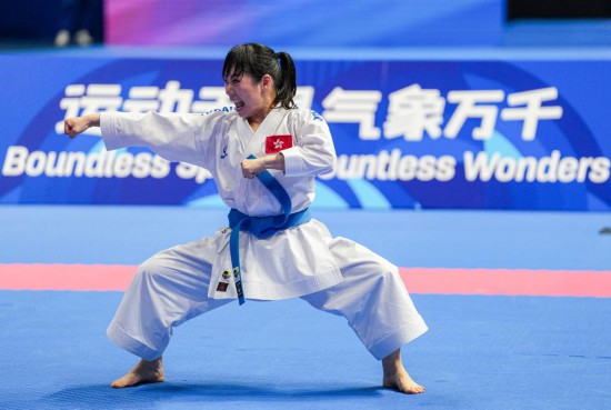 新华社成都8月8日电(记者牛梦彤、焦子琦)在8日进行的世界运动会空手道女子型比赛中,中国 香港选手刘慕裳击败日本选手尾野真步夺冠,为中国香港代表团赢得本届世运会的首枚金牌。 现世界排名第一的刘慕裳在当天比赛中表现稳定,夺冠之路波澜不惊。她在小组赛中连胜三场,以 小组第一身份晋级半决赛,随后又击败伊朗选手,顺利进入决赛。决赛中,面对世界排名第二的尾野真 步,刘慕裳套路动作稳健有力,控制精准,最终以45.3分的成绩领先对手1.7分,成功登顶。 原标题:成都世运会|波澜不惊与一波三折 空手道赛场书写两种命运 8月8日,中国选手魏宇纯(右)和智利选手托罗·梅内塞斯在比赛中。新华社记者 丁增尼达 摄 铜牌争夺战中,面对智利选手托罗·梅内塞斯,24岁的魏宇纯未能把握住机会,以0:1失利,无缘领 奖台。该级别金牌由德国选手米娅·比奇获得。 "比较可惜,越想越难受。"经历了从冲击金牌到无缘奖牌,魏宇纯赛后一度落泪,"今天的状态其 实是越来越好的,但突然被要求重赛一段,情绪受到些影响,想着努力去拼,最后还是没能追回比分。 这是我第一次经历这种情况,但比赛中任何状况都可能发生,我们也必须遵守规则。" 当日其他项目中,日本选手西山 ...