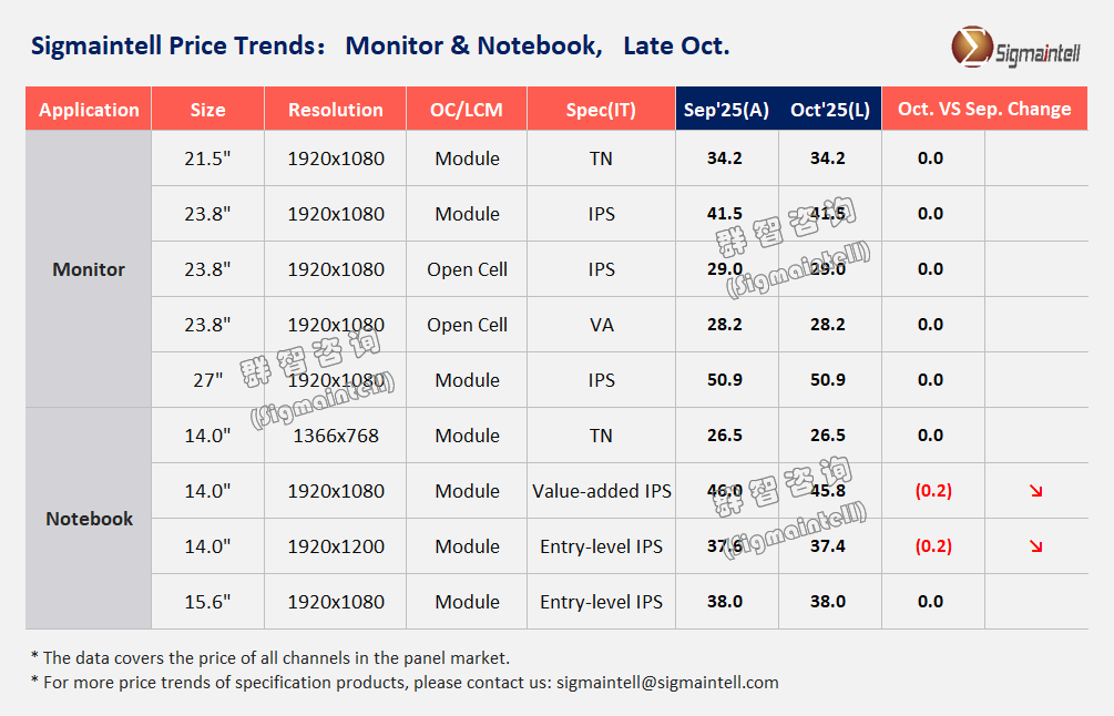 群智咨询:10月下旬全球笔记本面板市场进入淡季循环周期