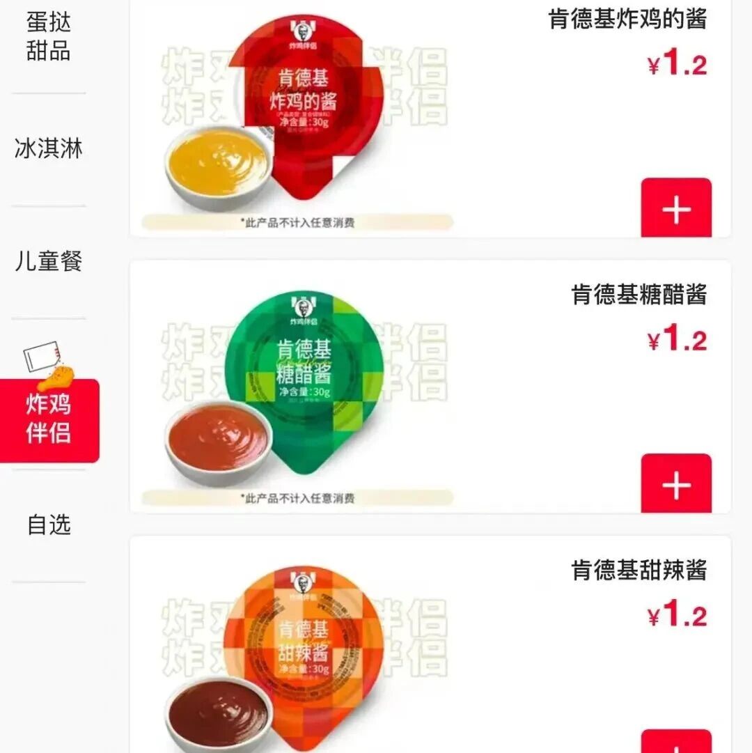 肯德基额外酱料要收费!蘸酱1.2元撒粉9毛