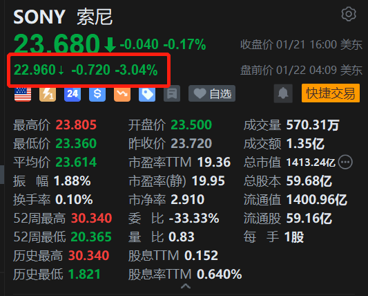 美股异动丨出售电视业务,索尼盘前跌3%,开盘势将再创阶段新低