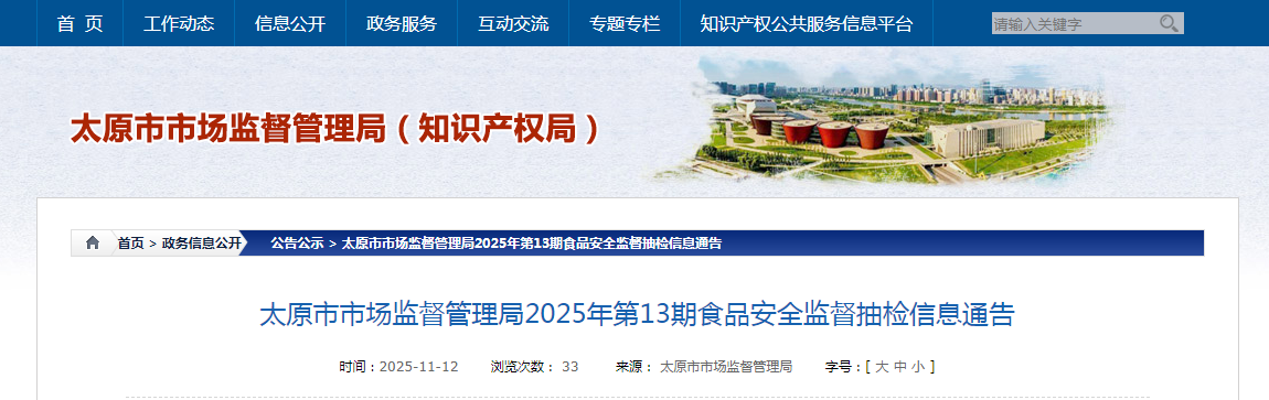 太原市市场监督管理局2025年第13期食品安全监督抽检信息通告