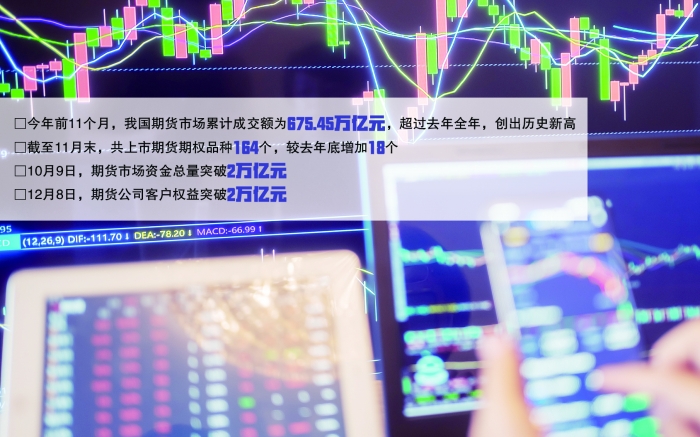 张大伟 制图 ◎记者 费天元 2025年,全球大宗商品市场供需两端都经历深刻重构:贸易博弈与地缘竞合交织,重塑全球产业链格 局;科技革命与绿色转型提速,为经济发展注入新动能。站在新旧周期交替的关键节点,大宗商品价格 全年波动剧烈,金银铜等价格屡创新高,能化及农产品则整体弱势。 面对充满不确定性的市场环境,越来越多的经营主体开始关注并参与期货市场。数据显示:今年前11个 月,我国期货市场累计成交额为675.45万亿元,超过去年全年,创出历史新高;10月9日,期货市场资 金总量突破2万亿元;12月8日,期货公司客户权益突破2万亿元;产业客户、境外客户参与度均明显提 升。 针对各方的风险管理诉求,我国期货市场的服务能力及配套制度持续完善。今年以来,上海证券报记者 多次走进一线采访,深刻感受到期货不再是一串晦涩难懂的字母与数字,而是真正融入了千行百业,在 促进商品保供稳价和产业转型升级方面发挥了突出且独特的作用。 品种体系扩容 品种创新是近年来中国期货市场发展的重要主线,也是提升期货服务实体经济广度深度的主要抓手。中 期协数据显示,截至今年11月末,我国共上市期货期权品种164个,较去年底增加18个。 三是紧扣行业绿 ...