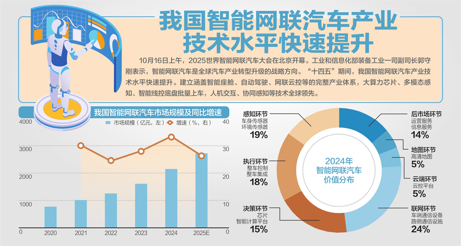 智能网联汽车技术发展 - 自动驾驶技术达到L4级的接驳车可实现车端、云端、路侧信息实时交互,配备硬件冗余系统确保安全 [2] - 新能源乘用车L2级及以上辅助驾驶功能装车率达67.8%,较2023年提升12.5个百分点 [2] - 2025年中国智能驾驶汽车市场规模预计接近万亿元,2030年L3及以上ADAS渗透率或达35% [3] 北京市自动驾驶示范区建设 - 北京市实现600平方公里路侧基础设施智能化部署,覆盖1600个全息路口,建成"车路云一体化"城市级工程试验平台 [4] - 示范区从1.0阶段双向10公里道路扩展至3.0阶段600平方公里,落地八大应用场景包括自动驾驶乘用车、无人配送等 [5] - 大兴国际机场2024年初开放常态化自动驾驶接驳服务 [5] 车路云一体化技术应用 - "聪明的车、智慧的路、精确的图、可靠的网、实时的云"五大体系融合多元数据,支撑自动驾驶技术发展 [7] - 示范区定义"多感合一"智能网联标准路口,部署1000余套车载单元,测试里程超3800万公里 [7] - 电子地图突破传统导航边界,以高精度空间底座支撑多场景协同需求 [7] 产业政策与研发投入 - 2025年《政府工作报告》提出大力发展智能网联新能源汽车等新一代智能终端 [3] - 创新中心年均研发投入占比不低于50%,聚焦车规级开源开放"车路云一体化"共性技术平台 [8] - 智能网联汽车在顶层设计、技术研发等领域形成与国际并跑趋势 [8]