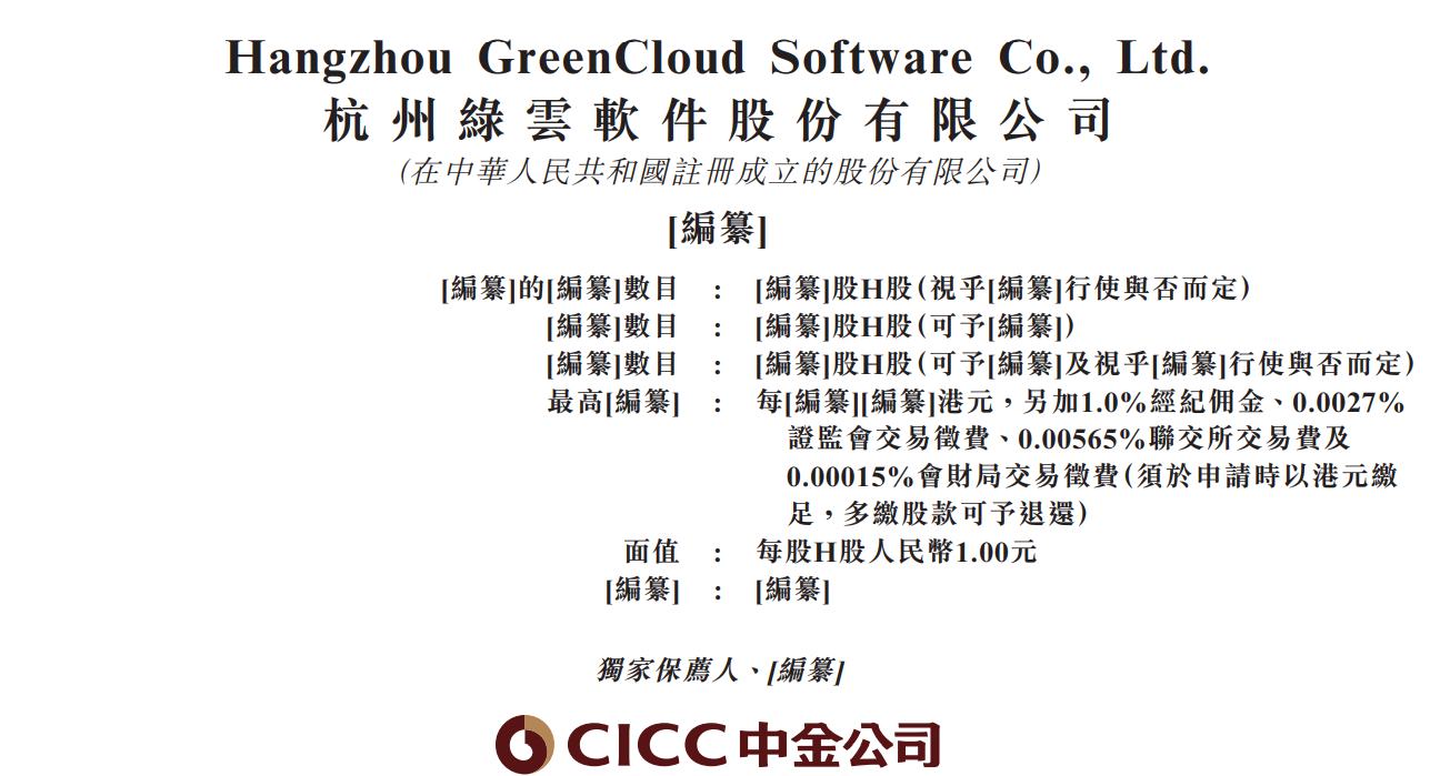 绿云软件,来自浙江杭州,递交IPO招股书,拟赴香港上市,中金公司独家保荐