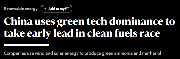 全球媒体聚焦 | 《金融时报》:中国绿色技术优势领跑清洁燃料竞争