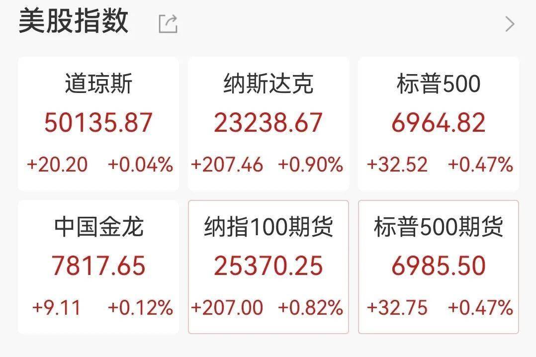 美股市场整体表现 - 2月9日美国三大股指全线收涨,道琼斯工业平均指数首次突破50135点大关,创下历史新高 [1] - 纳斯达克指数上涨近1%,标准普尔500指数上涨0.47%,距离历史高点仅一步之遥,市场情绪明显回暖 [1] 科技股板块表现 - 科技股板块成为本轮市场反弹的绝对主力 [3] - 万得美国科技七巨头指数(MAGS)上涨1.02%,报64565.91点,上涨651.86点 [4] - 甲骨文股价单日飙涨9.64%,创下自去年12月以来最大盘中涨幅,戴维森投行将其股票评级从“中性”上调至“买入”,显示市场对AI概念股重新看好 [3] - 微软股价上涨3.13%至413.715美元,Meta股价上涨2.41%至677.370美元,特斯拉股价上涨1.51%至417.320美元 [4] - 谷歌母公司Alphabet计划通过美元债券发行筹集200亿美元,规模高于最初预计的150亿美元,融资将主要用于加码AI支出 [4] 半导体行业表现 - 芯片股延续强势,费城半导体指数上涨1.42%,报8162.58点,上涨113.96点 [4][5] - 超威半导体股价上涨超过3%,博通股价上涨超过3%,英伟达股价上涨2.5%至190.040美元 [4] - 费城半导体指数成分股包括英伟达、台积电、博通、阿斯麦、美光科技、超威半导体、拉姆研究和应用材料 [5] 中概股表现 - 部分中概股价格如下:拼多多报105.570美元,阿里巴巴报162.970美元,京东集团报28.010美元,比亚迪股份ADR报12.000美元,小米集团ADR报22.750美元,美团ADR报23.400美元 [7] 贵金属市场表现 - 贵金属市场同步走强,伦敦现货黄金突破5000美元/盎司关口,盘中一度上涨超过2% [7] - COMEX黄金期货报5079美元/盎司,上涨1.99% [7] - 伦敦现货白银上涨超过7%,COMEX白银期货一度上涨超过8%至82.795美元/盎司,盘后涨幅进一步扩大至8%以上,逼近83.50美元/盎司 [7] - 具体数据:伦敦金现报5059.150美元/盎司,上涨92.540美元,涨幅1.86%;伦敦银现报83.331美元/盎司,上涨5.551美元,涨幅7.14%;COMEX黄金报5087.2美元/盎司,上涨107.4美元,涨幅2.16%;COMEX白银报83.050美元/盎司,上涨6.155美元,涨幅8.00% [8] 原油市场表现 - 国际原油价格同步上涨,WTI原油近月合约上涨1.27%,报64.36美元/桶;布伦特原油近月合约上涨1.45%,报69.04美元/桶 [8] - 市场关注美国交通部海事管理局建议悬挂美国国旗的商船尽可能远离伊朗领海,这与霍尔木兹海峡这一中东石油供应关键航道的安全形势密切相关 [8] 宏观经济与政策预期 - 投资者正静待关键经济数据公布,包括美国2026年1月就业数据以及美国1月消费者价格指数,数据将为通胀走势提供更多线索 [9] - 美俄《新削减战略武器条约》已于2月5日到期并失效,俄罗斯外交部表示俄美之间并未就新的削减战略武器相关条约谈判达成任何协议,这一地缘政治动态影响着市场情绪 [9] - CME“美联储观察”数据显示,市场对美联储降息的预期正在逐步升温,预计到3月降息25个基点的概率为17.7%,到6月累计降息25个基点的概率为50.4% [9]