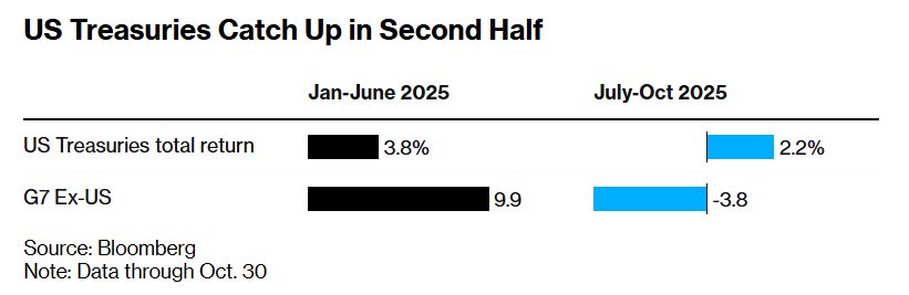尽管存在从预算赤字愈发膨胀到白宫抨击美联储货币政策独立性的持续担忧情绪,叠加特朗普一系列激进政策痛击 投资者们长期以来坚信的"美国例外论",但是随着美债下半年大举反弹领跑全球债市,美国政府债务市场仍然巩固 了其作为全球最受信任主权债务资产的绝对统治地位。 自唐纳德·特朗普重返白宫重掌美国总统大权以来,全球债券市场中美国的核心首要地位一次又一次地受到质疑。从 全面的对等关税政策与减税,到巨额预算赤字,再到特朗普本人对美联储独立性的持续抨击,华尔街上的许多顶级 投资机构一直在敲响几乎相同的不祥警钟:"美国例外论"走向终结,"卖出一切美国资产"(Sell America),尤其是卖出 面临庞大预算赤字压力与激进通胀导致潜在通胀升温危机的美国国债资产。 然而,尽管如此,全球投资者们仍在持续涌入美国主权债务市场,推动美债市场在今年下半年上演超级大反弹—— 那些嘴上说着"美国例外论已经处于崩塌进程"的华尔街大型投资机构们实际上正在趁着高收益率时期疯狂逢低买入 美债资产。 "期限溢价"缓解叠加美联储降息预期升温之下的借贷成本下降,美债投资回报持续上升,而且迄今为止最为糟糕的 经济预测展望都未能成真。事实上,规模达30万亿美 ...