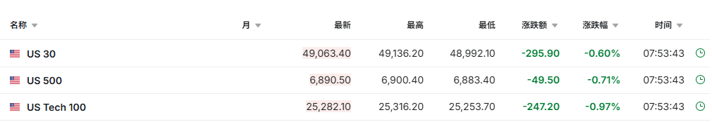 市场情绪与事件驱动 - 受特朗普提议对八个欧洲国家加征新关税影响,全球市场避险情绪升温[1] - 加征关税的提议源于八个欧洲国家反对其收购格陵兰岛,美总统特朗普发文称将加征10%的关税,数月后增至25%,直至就“完全、彻底购买格陵兰岛”达成协议,引发了市场对贸易战的担忧[1] 全球主要股指期货表现 - 美股期货低开,标普500指数期货跌49.50点至6,890.50点,跌幅为0.71%[1][2] - 道琼斯工业平均指数期货(US 30)跌295.90点至49,063.40点,跌幅为0.60%[2] - 纳斯达克100指数期货(US Tech 100)跌247.20点至25,282.10点,跌幅为0.97%[2] 避险资产价格表现 - 现货黄金价格站上4690美元/盎司关口,刷新历史高点,日内涨幅超过2%[5] - 现货白银价格站上94美元/盎司关口,创历史新高,日内涨幅超过4%[5] - 美国10年期国债期货上涨5个点,30年期国债期货亦上涨5个点[2]