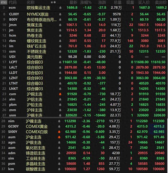 金属普跌 沪锡跌超3% 沪镍跌逾2% 碳酸锂、多晶硅涨逾1%