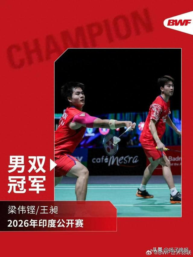 赛事结果 - 在2026年印度羽毛球公开赛男子双打决赛中,中国组合梁伟铿/王昶以2比1战胜日本组合绿川大辉/山下恭平,夺得冠军 [1] - 中国羽毛球队在该站赛事总计获得2枚金牌和1枚银牌 [1]