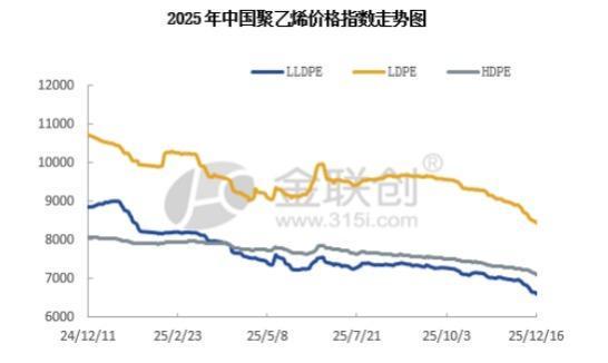 成本面看,国际原油价格在12月延续震荡下行趋势,截止12月16日,布伦特跌破60美元/桶,报收每桶 58.92美元,创下了2021年2月初以来的最低水平。而WTI也即将失守55美元/桶一线。今年以来,WTI价 格下跌了约23%,这一表现是自2018年以来最糟糕的;而布伦特原油的价格也下跌了约21%,是自2020 年以来最糟糕的表现。原油价格下跌直接带动油制聚乙烯原料成本下降,12月油制成本预计进一步下 探,对聚乙烯价格的支撑作用持续减弱。 从期货方面看,12月以来连塑主力合约呈现震荡走低运行, 12月5 日主力合约由 2601 更换至 2605 合 约,12日主力价格最低到6475后小幅反弹,但在市场陆续消化11月经济数据利好后,再无新利好驱动, 盘面再次回归基本面运行,预计短期连塑主力合约 2605继续向下寻求底部支撑趋势运行,基本面供应 承压,建议持续关注基本面供需变动消息指引,短线波动区间在 6450-6750。 综合来看,短期聚乙烯市场依然难从困境中脱离,上游及贸易商积极出货仍是主思路,低价成交难改整 体弱市基调,市场缺乏核心利好提振,大概率延续震荡偏弱走势,12月收官之月难有回暖表现。(金联 创聚乙 ...