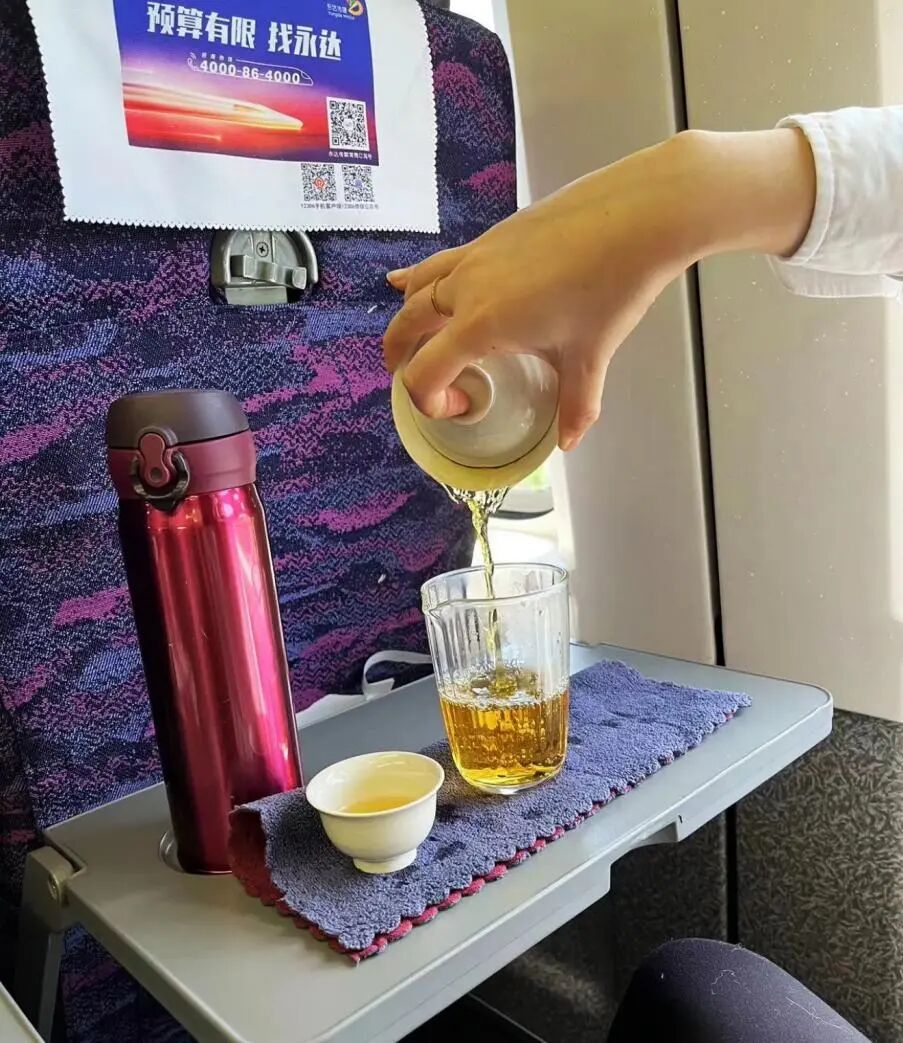 如果让全国网友提名一个最爱喝茶的省,福建大概率会高分夺冠。 毕竟,福建人骨子里都流淌茶水的说法,一直让人心服口服。 "一个福建人=三杯老火凉茶"的老话,更是早已深入人心。 福建人到底有多爱喝茶?就这么说吧,没见过哪里的人,坐个高铁都必须泡上一壶的。 图源:小红书@YK,已获授权 01 福建人坐高铁,为啥人手一套茶具? 如何在高铁上鉴定福建人?看茶具就够了。 其他地方的人坐高铁,比如京沪打工人,大抵会买一杯咖啡,打开笔记本电脑办公。 东北人则会准备一袋吃的,一边分享,一边还不忘跟邻座朋友社交聊天。 而福建人不语,一旦坐上高铁,只是默默地掏出一整套茶具,开始泡茶。 图源:小红书@向光,已获授权 第一次见到这种情形的外地人,怕是有一种恍惚感:这也能行? 但坐过一次厦门到福州高铁的人,想必对这样的场景并不陌生。 图源:小红书@妙妙妙七,已获授权 顺便一提,前两年福建还有专门的"泡茶水"售卖,比起同规格的矿泉水价格还要高,但销量不错。 图源:微博@厦门身边事 出门在外,对于福建人来说,纵然茶具陈列麻烦,泡茶步骤繁琐,但必不可少。 洁具、摇香、洗茶……目光所及,每一个高铁上泡茶的福建人,都是行走的茶文化大师。 图源:抖音 ...