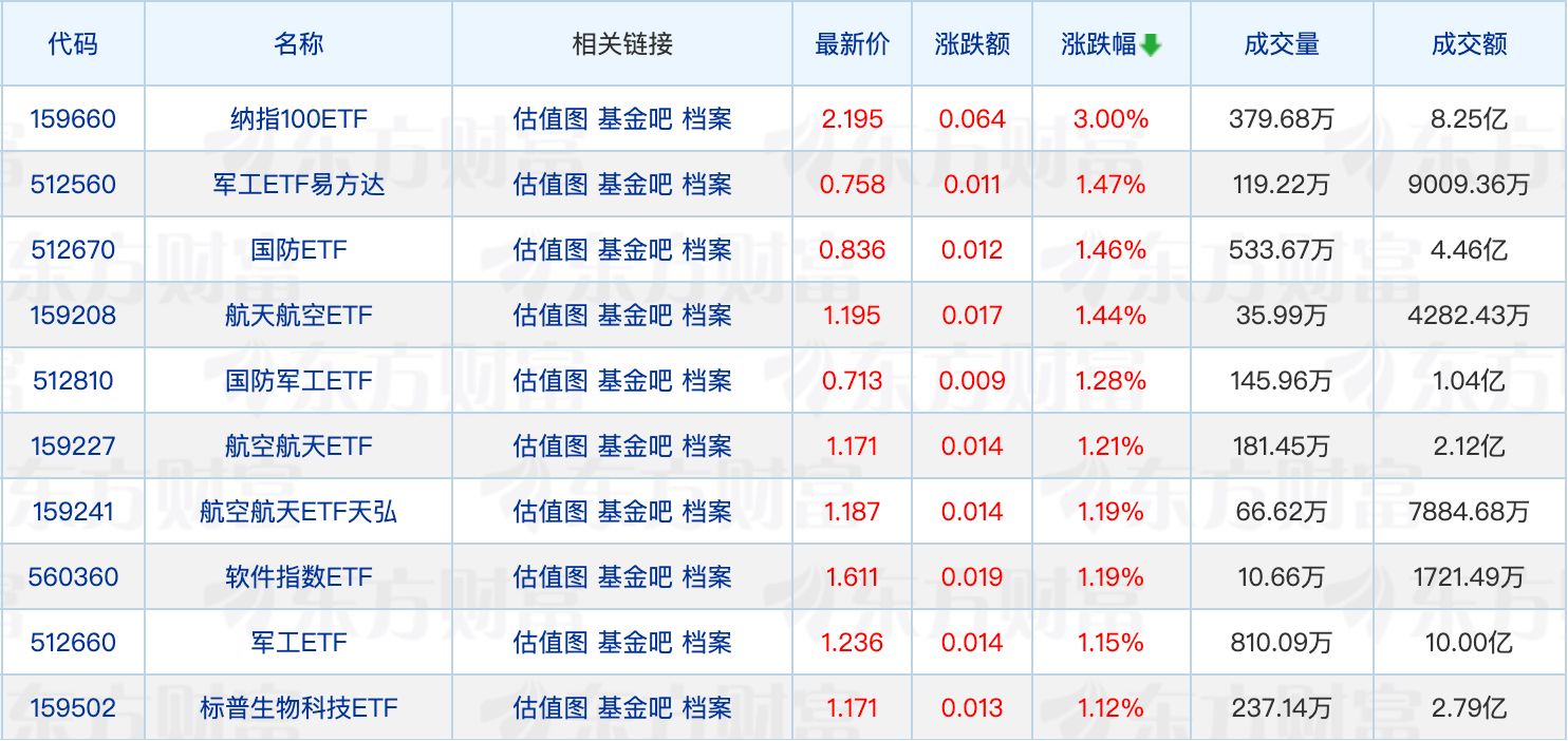 一、今日基金新闻速览 1、今年以来新基金数量已超去年 根据Wind统计,截至10月27日,今年以来已有1187只新基金成立,已超过去年全年的1135只。其中,股票型基金发行规模达到3456.53亿份,占总发行规模 的37.47%,创2011年以来的新高。 2、合格境外投资者新政落地 10月27日,证监会印发《合格境外投资者制度优化工作方案》,其中提到允许使用ETF期权开展风险管理。 3、QFII三季度持股市值已超212亿元 Wind数据显示,截至目前,已有236家A股上市公司的前十大流通股股东名单中出现QFII身影,QFII合计持股量10.18亿股。以今年三季度末收盘价核算,合 计持股市值达到212.83亿元。 二、知名基金经理最新动态 1、张坤最新持仓路径披露 三、今日ETF行情点评 1、ETF行情复盘 市场冲高回落,沪指盘中突破4000点大关,再创十年新高。截至收盘,沪指跌0.22%,深成指跌0.44%,创业板指跌0.15%。沪深两市成交额2.15万亿元,较 上一个交易日缩量1923亿元。板块方面,汽车服务、航运港口、航天航空等板块涨幅居前,而贵金属、能源金属、钢铁等板块回调居前。 具体来看,纳指100E ...