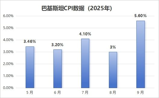 通胀整体态势 - 2025年5月至9月消费者价格指数呈现先稳后升的波动态势,9月通胀水平较8月明显反弹[1] - 5月CPI同比上涨3.46%,延续回落趋势;7月CPI同比反弹至4.1%,环比上涨2.9%;9月CPI同比大幅回升至5.6%,为两个季度以来最高点[4] - 9月通胀结束了连续两月的回落态势,物价稳定面临压力[1][4] 月度CPI波动分析 - 2025年二季度至三季度初CPI整体保持相对低位运行,而9月出现明显回升[2] - 7月CPI同比4.1%远低于2024年7月11.09%的同期水平,显示通胀压力较去年显著缓解[4] 能源价格影响 - 7月通胀反弹的核心驱动力来自能源成本上涨,燃气费用同比上涨29.85%,电费同比上涨21.46%[5] - 能源价格调整推动敏感价格指数单周环比上涨4.07%,对CPI贡献度超过30%[5] - 9月能源关税的常规调整进一步放大了通胀压力[5] 食品价格影响 - 7月新鲜蔬菜价格环比飙升56%,贡献了城市CPI环比涨幅的40%,主要受夏季降雨导致的供应短缺影响[5] - 9月持续洪水天气破坏农作物收割与运输,导致粮食与蔬菜价格同步上涨,叠加能源价格传导效应,共同推升CPI突破5%关口[5] 经济影响与政策背景 - CPI波动对民生与企业经营产生显著影响,低收入群体受食品与能源价格上涨冲击最大,企业面临原材料与能源成本双重压力[6] - 巴基斯坦国家银行货币政策委员会已连续四次将政策利率维持在11%不变,以平衡通货膨胀与经济复苏需求[6] - 9月CPI数据的反弹反映出通胀韧性有可能超出预期[6]