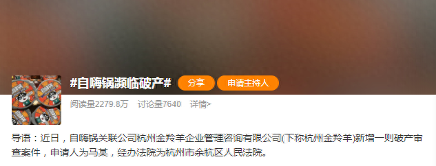 “昔日网红自嗨锅濒临破产”上热搜,创始人被限高