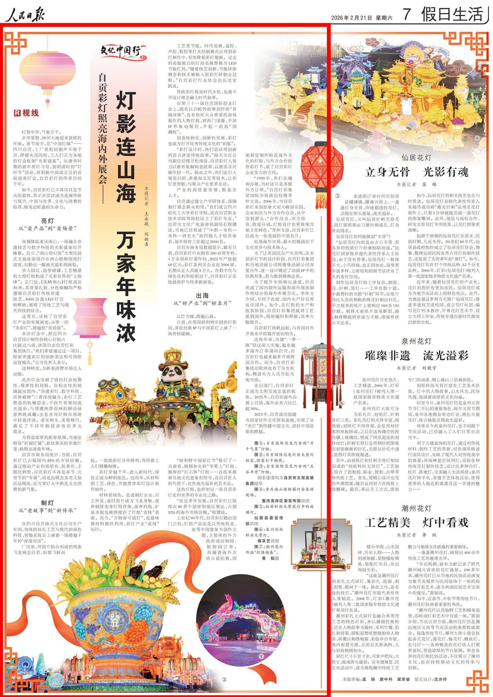 文章核心观点 自贡彩灯产业已从传统的节庆产品制造,升级为融合文化、科技与消费的现代文旅产业,并通过“卖场景”、绿色智能化转型及国际化拓展,实现了产业的高质量发展与文化价值的全球传播 [1][10] 产业发展与模式升级 - 产业模式从单一的“卖彩灯”跨越到“卖场景”,为新春消费市场注入动能 [1][13] - 通过推动产业向场景化、故事化、主题化转型,自贡彩灯已占据国内85%的市场份额,不再仅是春节、元宵节的“专属” [14] - 在重庆“南山奇幻夜”项目中,源自自贡设计制作的核心灯组占比超过八成,项目旨在探索非遗彩灯的创新表达和可持续运营模式 [2][11][13] 技术创新与绿色转型 - 材料使用更绿色,废旧瓷片、钢管、药瓶等被循环利用于灯组制作,实现“万物皆可成灯” [16][17] - 工艺更节能,应用遥控、声控、数控等灯光控制模式,并将高能耗白炽灯泡替换为LED节能灯具,节能环保理念贯穿研制全过程 [3][17] - 引入视觉识别、多感知交互等技术,让彩灯更智能,增强与观众的互动 [3][18] 文化传承与内容创新 - 设计理念融入时代叙事,在灯会中融合《白蛇传》等传统故事与热门国漫、手游IP的Q版形象,掀起“国潮热” [3][17] - 彩灯成为打开优秀传统文化的“钥匙”,公司尝试用创新的语言和形象解构老故事,以对接年轻一代 [3][18] - 自贡已形成“中职—专科—本科—研究生”四级人才培养体系,每年培育工匠超过2000名,为产业高质量发展奠定根基 [4][19] 产业规模与知识产权 - 截至2025年,自贡彩灯行业产值超60亿元,拥有彩灯及相关企业近2000家,长期从业人员超5万人 [4][19] - 行业拥有300余项专利、1万余项彩灯著作权 [4][19] 国际化拓展与海外市场 - 自贡彩灯已陆续在80多个国家和地区展出,占据92%的海外市场份额 [21] - 海外业务模式从早期承接外方订单,升级为与外方合作投资、收益分成的办会模式,灯组设计更体现当地文化特色 [6][21] - 2025年,自贡在海外办展上百场,海外业务占比已超30% [8][23] - 为提升海外市场响应速度,采用国内制作运输与国外现场制作相结合的布展方式,派遣工匠赴国外现场作业以提升效率 [6][22] - 2023年,自贡成功创建为国家对外文化贸易基地,实现了从“卖灯”到传播中国文化、讲好中国故事的跨越 [7][23]